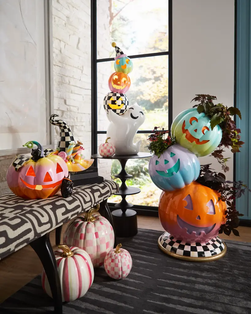 Mini pumpkin featuring painted checks and and a glittery stem Crafted of polyresin Approx. 7.4"Dia x 8.4"T Item Weight (Lbs.): 1.1 Imported About MacKenzie-Childs: Since 1983, MacKenzie-Childs has created distinct items from an imaginative perspective, fusing traditional, modern, and playful elements into pieces that shout joy. Drawing from its rich handmade heritage, MacKenzie-Childs’ goal is transforming your home into your happy place and making every corner feel fresh and original. Inspiration comes from worldwide travels, the beauty of its unique headquarters on a 65-acre former dairy farm in Upstate New York, and a firm belief in living life to its fullest.
