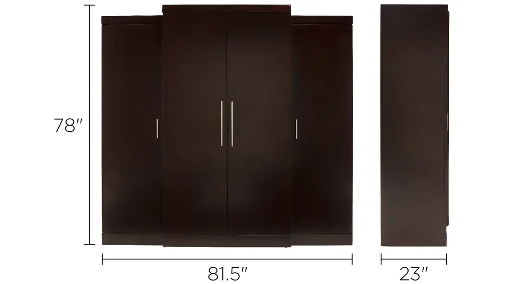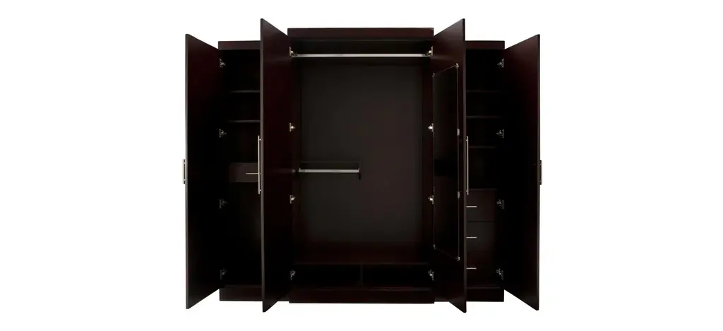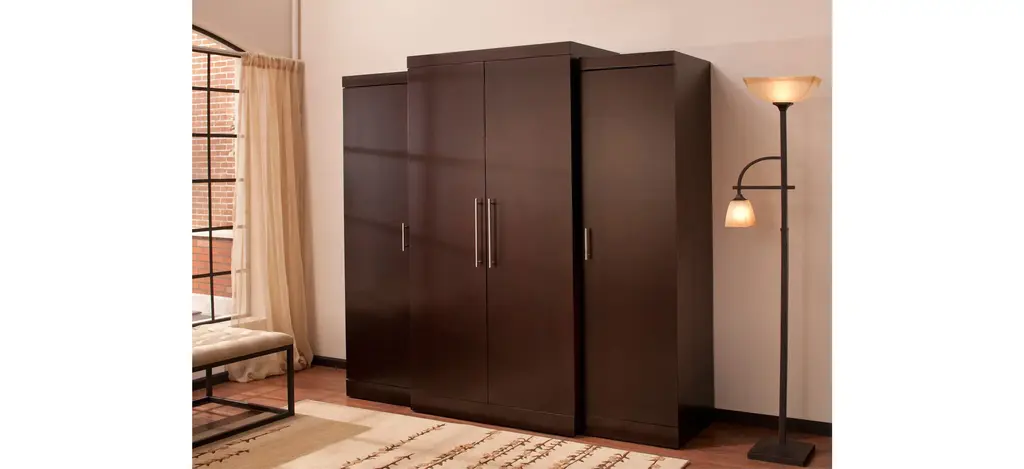 Perfectly suited for your favorite apparel, this Madden 3-pc. wardrobe boasts a variety of interior fittings, like clothing rails, adjustable shelves and finished drawers. And to help you save space, it also features a full-length mirror on the back of the center-right door. Sophisticated styling with a rich espresso finish and satin nickel hardware make this wardrobe a gorgeous choice for any home.