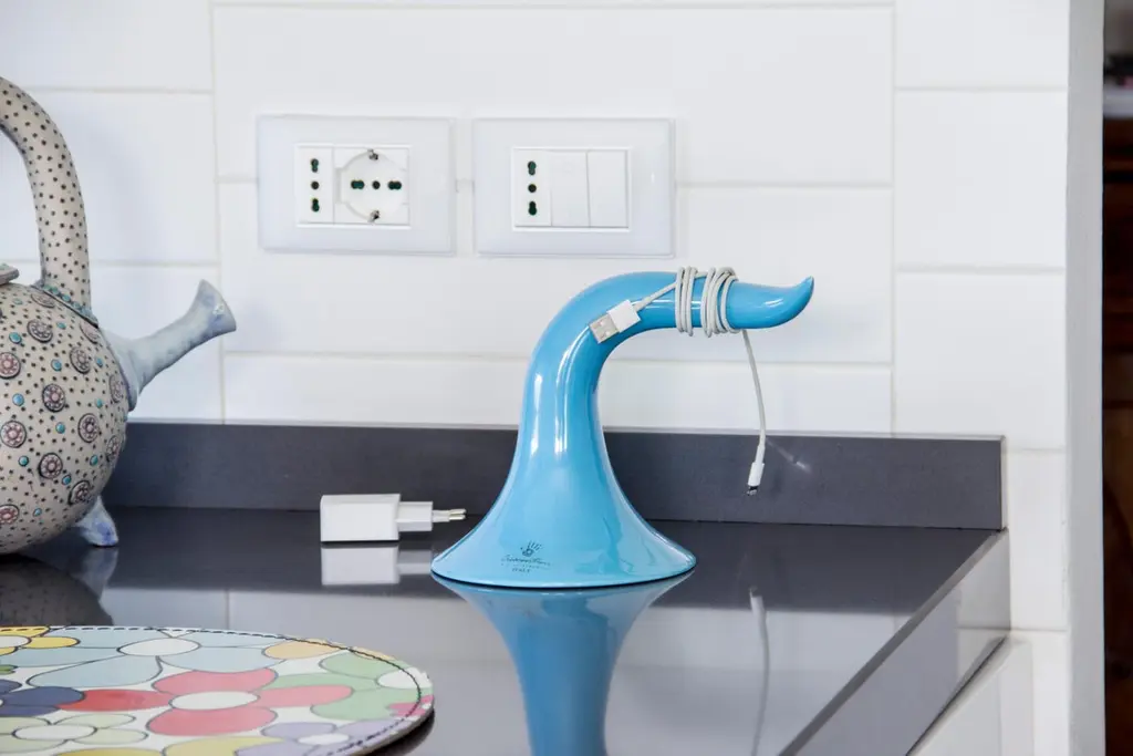 DescriptionThis is an amplifier compatible with all smartphones in which the speaker is positioned at the bottom, near the microphone. It will allow you to increase the volume of your smartphone by 15/20 decibels!European Design Patent filed n. 005778529MaterialsHandmade in 100% Italian ceramic and non-toxic glazes, i.e. free of lead and other substances harmful to the health of workers (as required by EU regulations).Method Of UseJust insert your smartphone in the appropriate space and start your favorite music to hear it clear and loud at home, outdoors or wherever you want! It has a hole for passing the power cable. Eco-sustainable ProductionThe production method is characterized by an ethical and eco-sustainable approach. Ceramics of controlled origin, non-toxic glazes and photovoltaic panels are used to guarantee the functioning of the electric ovens.100% Made in Italy certified quality.Between Art and DesignEach object is unique, because it is handcrafted with skill and passion. For this reason it can have imperfections, which are not defects but are the hallmark of craftsmanship. The linear, modern and colorful style makes this object a must-have element in the furnishing of people with original, creative and demanding tastes.Amplifier for Mobile and SmartphoneIncrease the volume of your smartphone by 15/20 decibels!Perfect accessory for your Mobile, Iphone, Samsung, Huawei, Nokya, Sony, Asus and all models with the speaker underneath the microphone. Equipped with a hole for the power cable, for your favorite music!It does not need cables, electricity, battery or wireless: Watch the Video!All products are made with non-toxic enamels and do not contain lead or other harmful substances, in full compliance with EU regulations.In addition, the raw materials are of controlled origin and the electric ovens are powered by photovoltaic panels.
