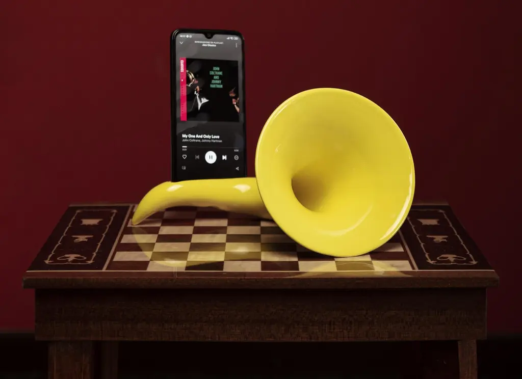 Made In Italy Sound Amplifier, Yellow Ceramics, Customizable Speaker. 2022