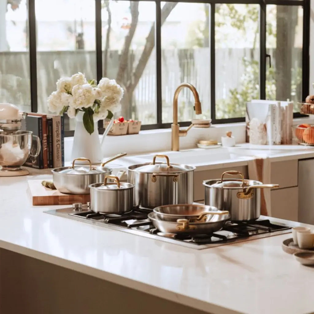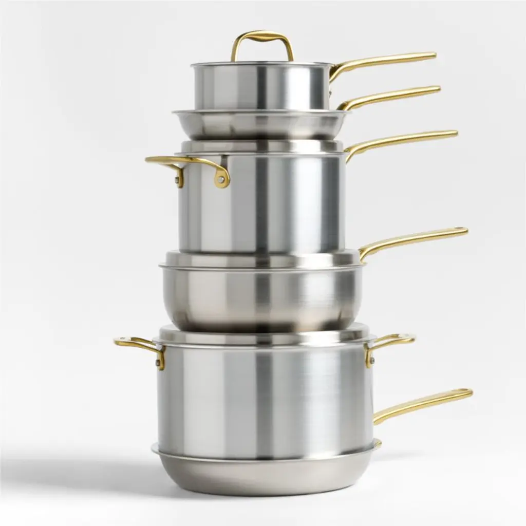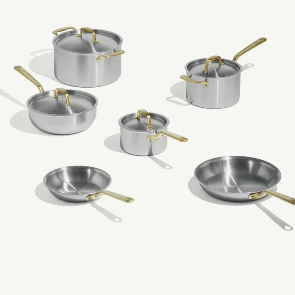 Made In Stainless Clad 10-Piece Cookware Set With Antique Brass Hardware