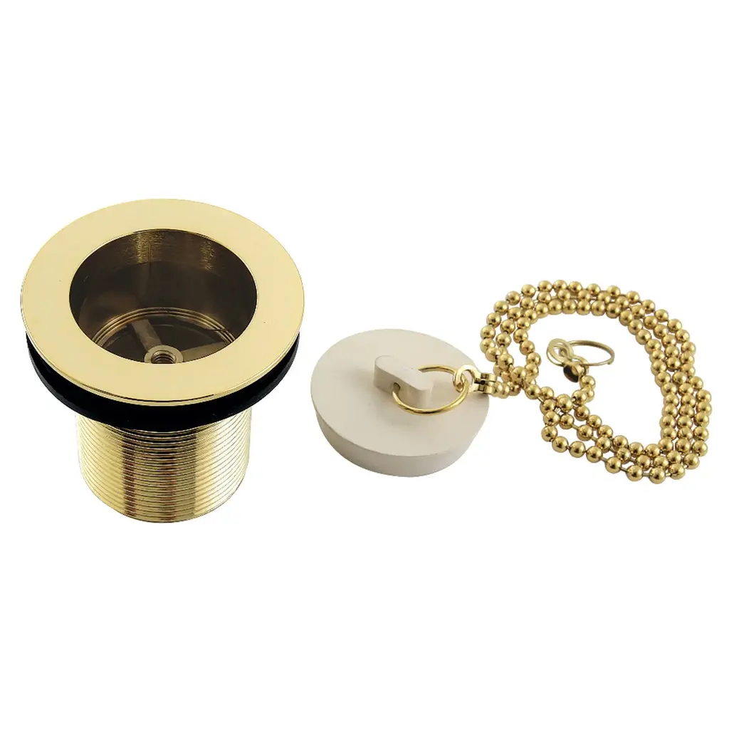 For vintage styling and design, chain and stopper drains are an excellent option. Pull on the chain to allow water to flow out without having to reach into the water. Available in multiple finishes to match your tub filler, the Kingston Brass Mate to Match 1-1/2" chain and stopper tub drain with 2" body thread will fit most standard bath tubs. The included chain length is 29-inch long. Overflow is sold separately.FeaturesFabricated from high quality brassChain and stopper drain operation2-3/16" thread lengthFits 1-1/2" (nom) 11-1/2 NPS thread drainThreaded drain body for easy installationDrain trim and body comboProp 65 disclaimerWARNING: This product can expose you to chemicals, including lead which is known to the State of California to cause cancer or birth defects or other reproductive harm, for more information, go to www.p65warnings.ca.gov