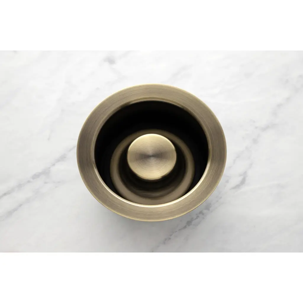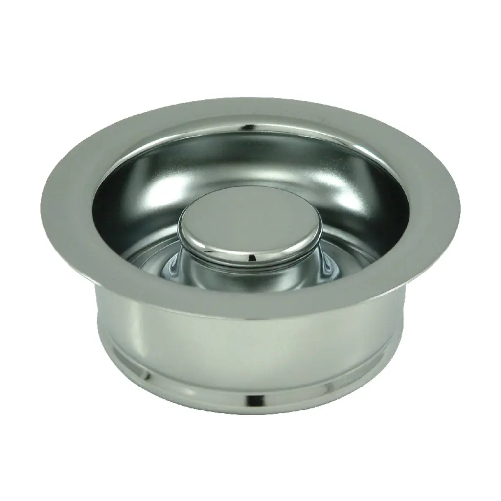 Easy to install and able to fit above most garbage disposal openings, the Made To Match garbage disposal flange keeps unwanted items from clogging your drain. The available premium finish options puts the finishing touches on your kitchen design as you can coordinate the disposal flange with your faucet.FeaturesHigh quality brass construction for durability and reliabilityFits most standard garbage disposable unitsIncludes disposable flange and stopperFits sink with 3-1/2" drain openingHeight: 1-3/4"4-1/2" top rim diameterEasy installationCorrosion-resistant finish