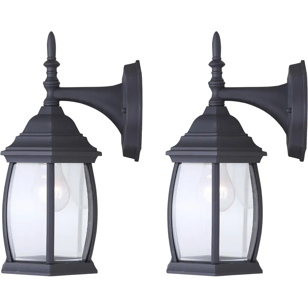 Outdoor, IOL73T BK, Twin Pack, 1 Bulb Uplight/Closed Downlight/Open Downlight, Clear Bevelled Glass Panels, 100W Type A