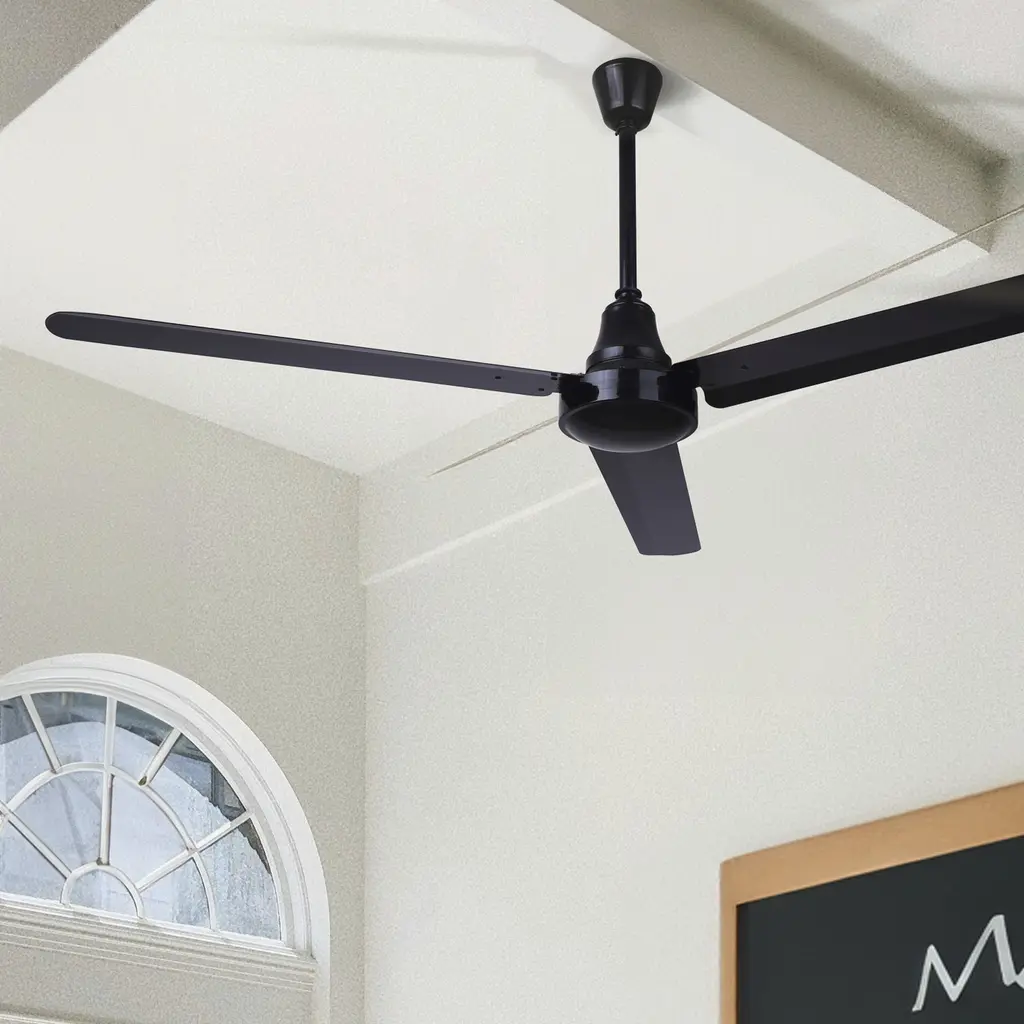 This large 60-inch fan combines high performance with weatherproof resilience, all while showcasing a sophisticated black finish. This fan is the embodiment of robust design and efficiency, tailored for spaces that demand not just air movement, but air movement capable of withstanding challenging environmental conditions. From industrial warehouses to outdoor venues, the fan ensures optimal airflow without succumbing to the elements. This fan also features an easy-to-use wall control for quick and easy operation.