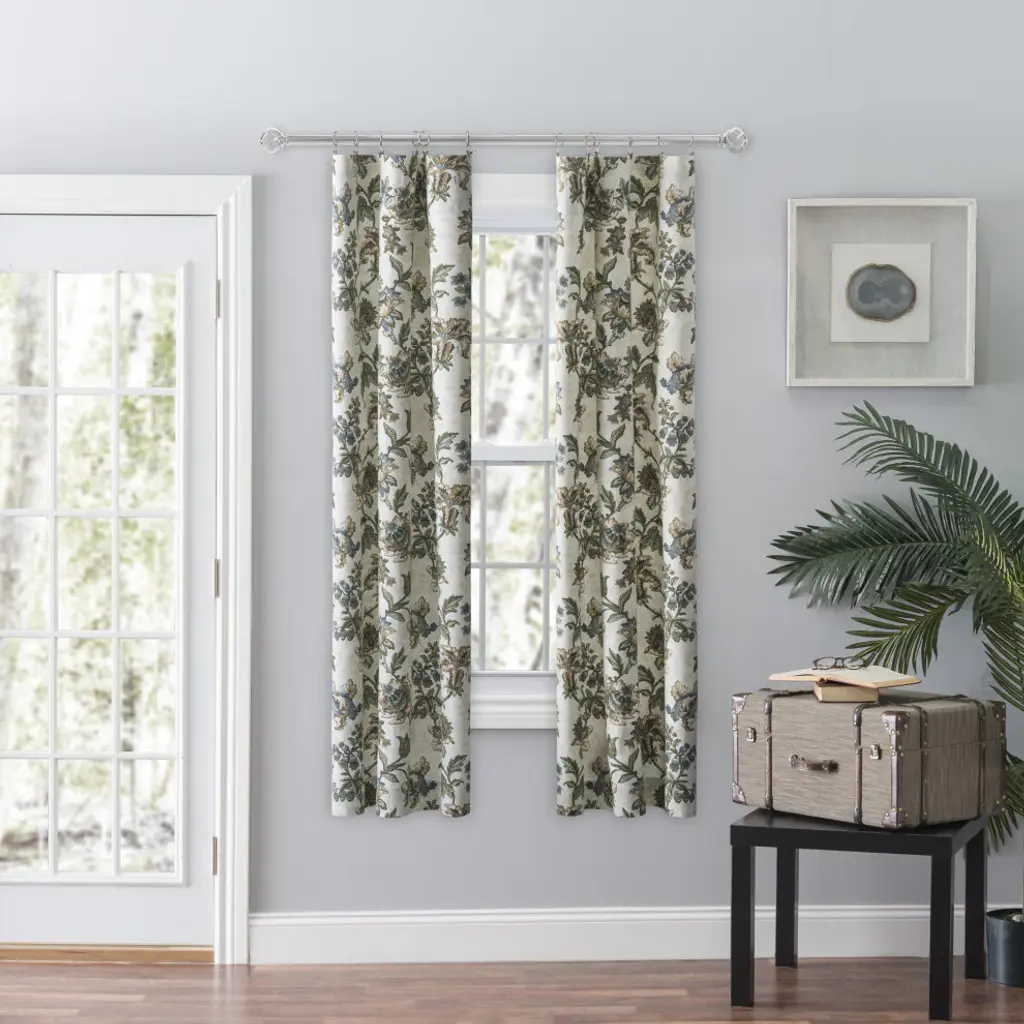 Make a colorful, stylish statement in any room with this rich and beautiful floral. The tailored panel pair is constructed using 50-percent polyester/50-percent cotton duck fabric that creates a smooth draping effect, soft texture and easy maintenance. Each curtain panel is constructed with a 2-inch header and 3-inch rod pocket. Two tiebacks are included for a different look. For wider windows simply add multiply panels together. Easy care machine washable.