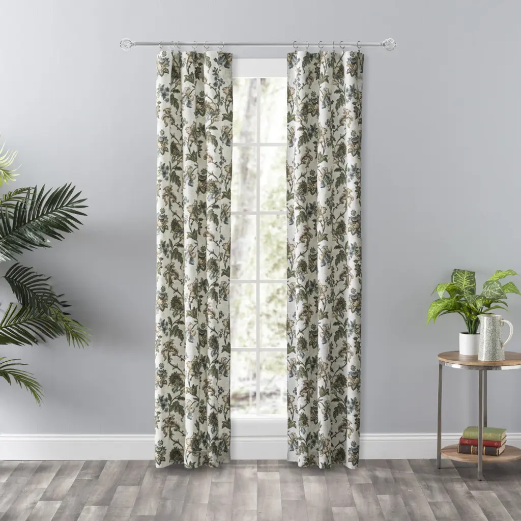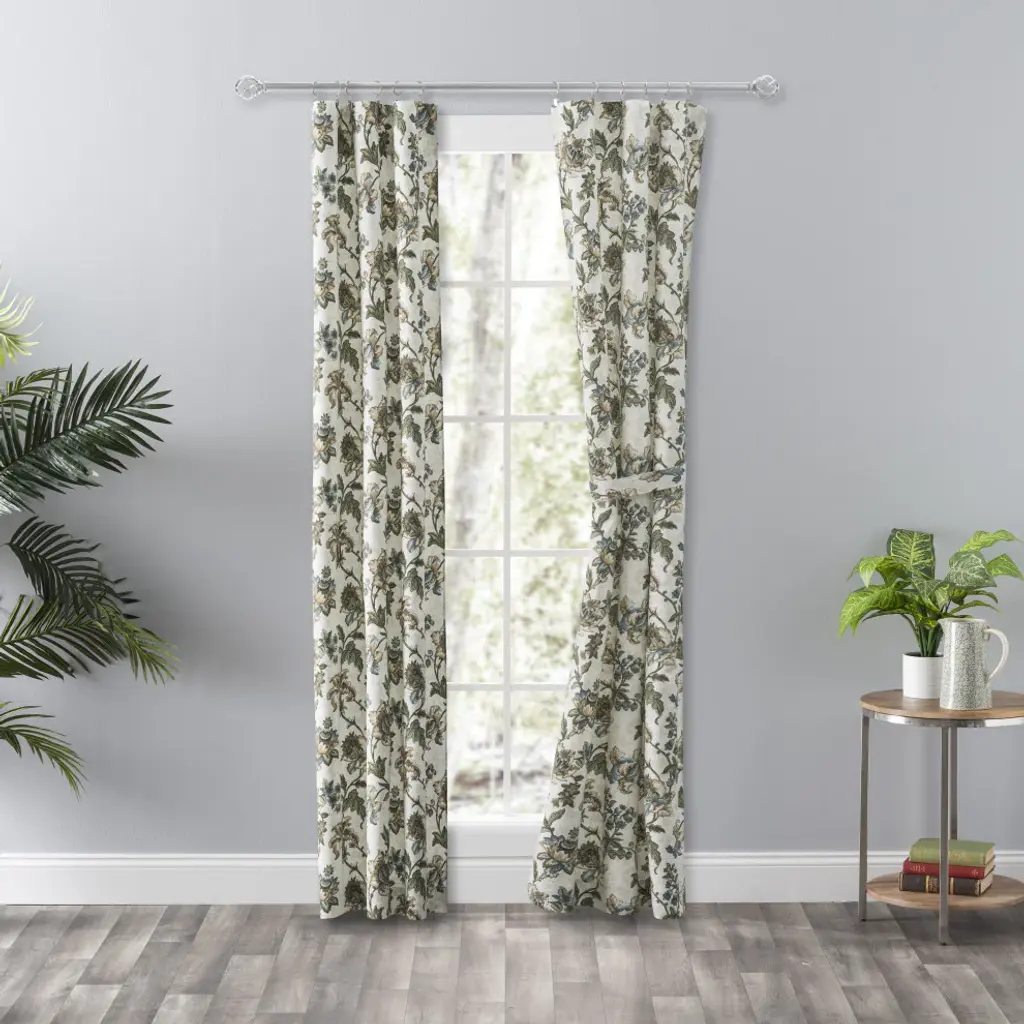 Make a colorful, stylish statement in any room with this rich and beautiful floral. The tailored panel pair is constructed using 50-percent polyester/50-percent cotton duck fabric that creates a smooth draping effect, soft texture and easy maintenance. Each curtain panel is constructed with a 2-inch header and 3-inch rod pocket. Two tiebacks are included for a different look. For wider windows simply add multiply panels together. Easy care machine washable.