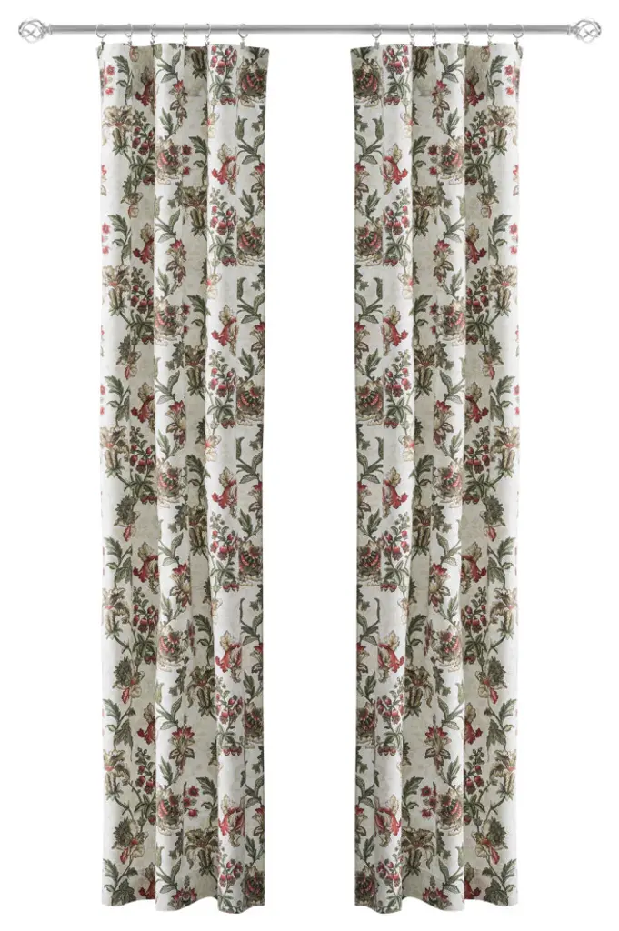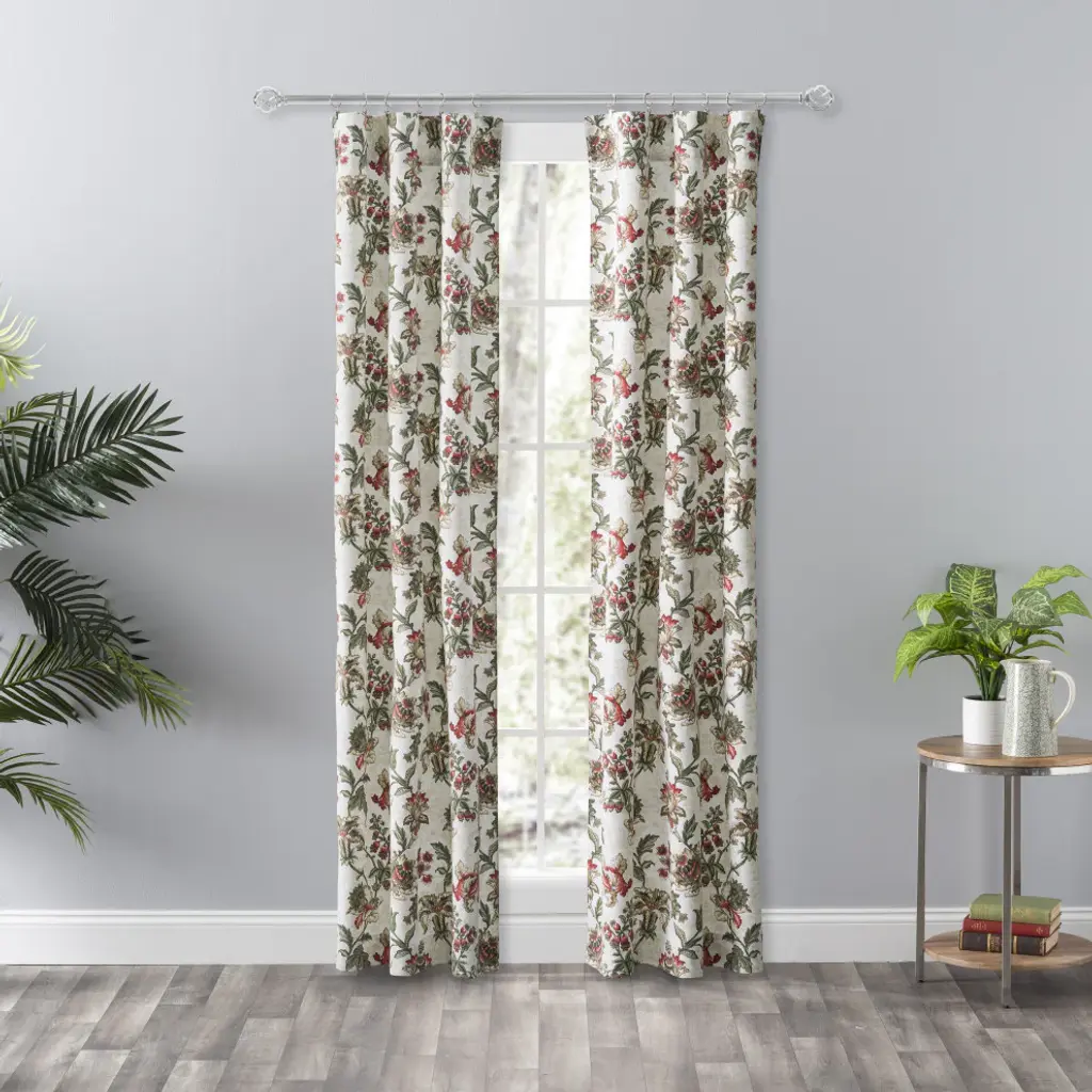 Make a colorful, stylish statement in any room with this rich and beautiful floral. The tailored panel pair is constructed using 50-percent polyester/50-percent cotton duck fabric that creates a smooth draping effect, soft texture and easy maintenance. Each curtain panel is constructed with a 2-inch header and 3-inch rod pocket. Two tiebacks are included for a different look. For wider windows simply add multiply panels together. Easy care machine washable.