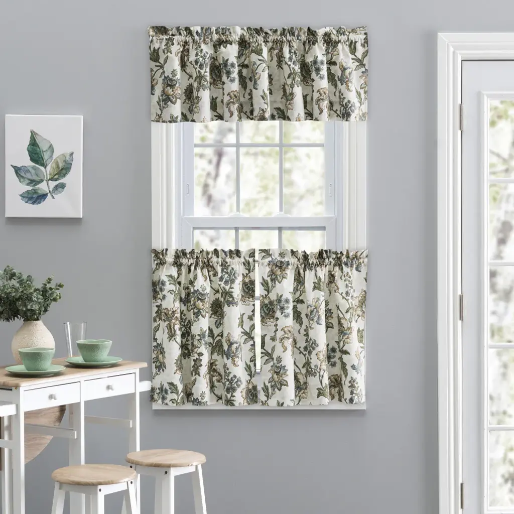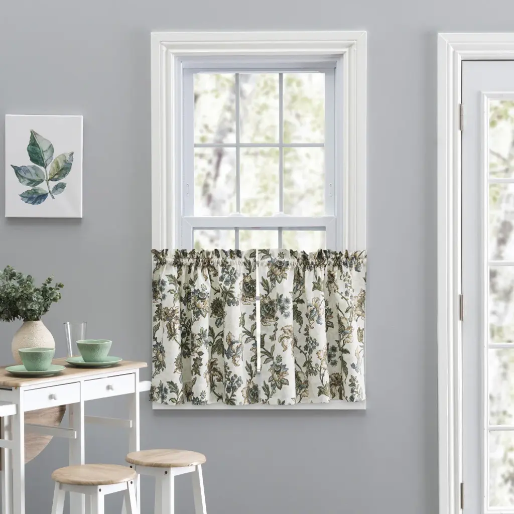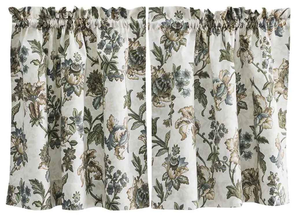 Make a colorful, stylish statement in any room with this rich and beautiful floral. Made with 50-percent polyester/50-percent cotton duck fabric that creates a smooth draping effect, soft texture and easy maintenance. Tailored Tier curtains are used to cover the lower portion of your windows or used alone on shorter length windows. Each curtain panel is constructed with a 1.5-inch header and 1.5-inch rod pocket. Sold in pairs (2 panels) width measures 56-inches (both 28-inch panels together), while length measures 24-inches from top stitch down. For wider windows add multiply panels together. Easy care machine washable.