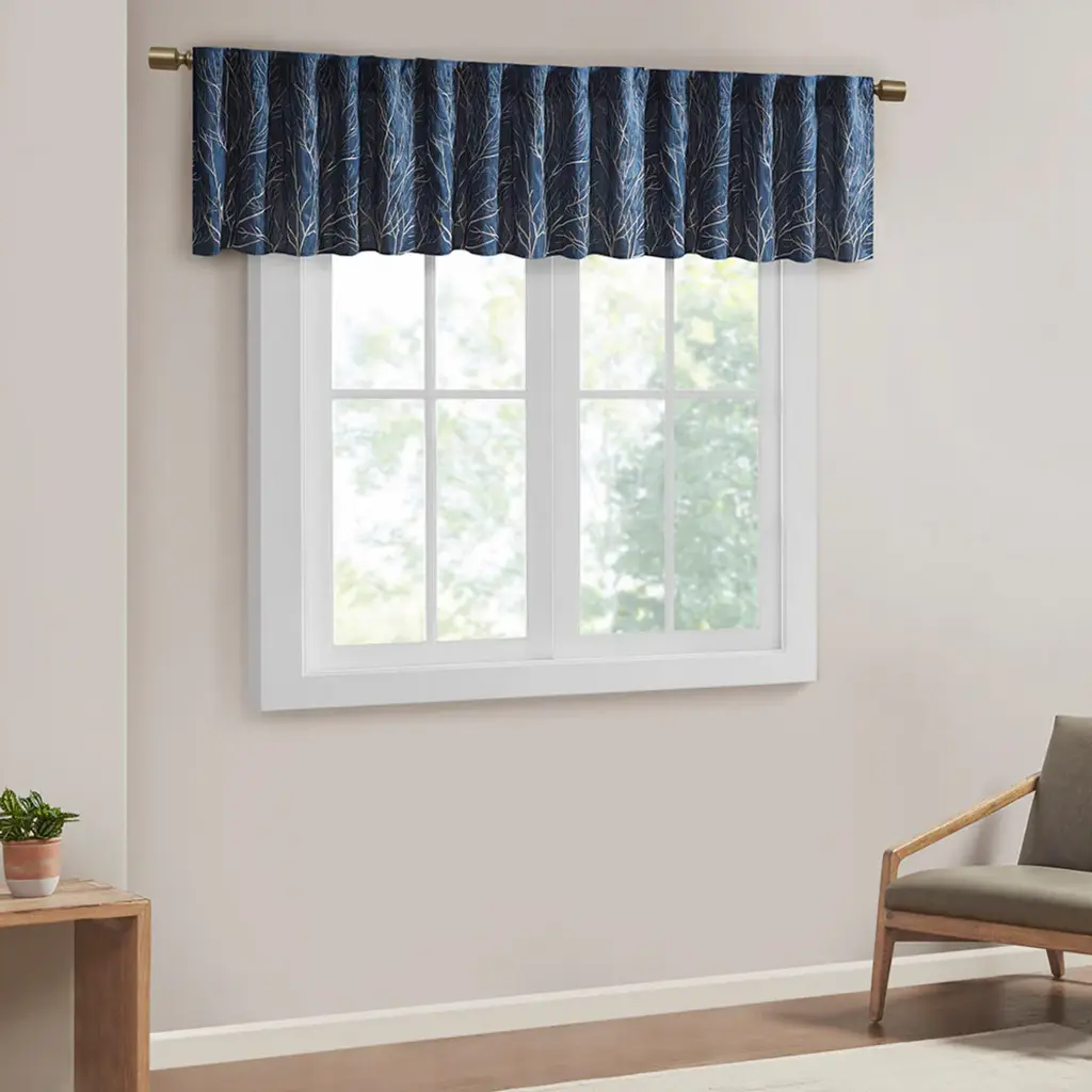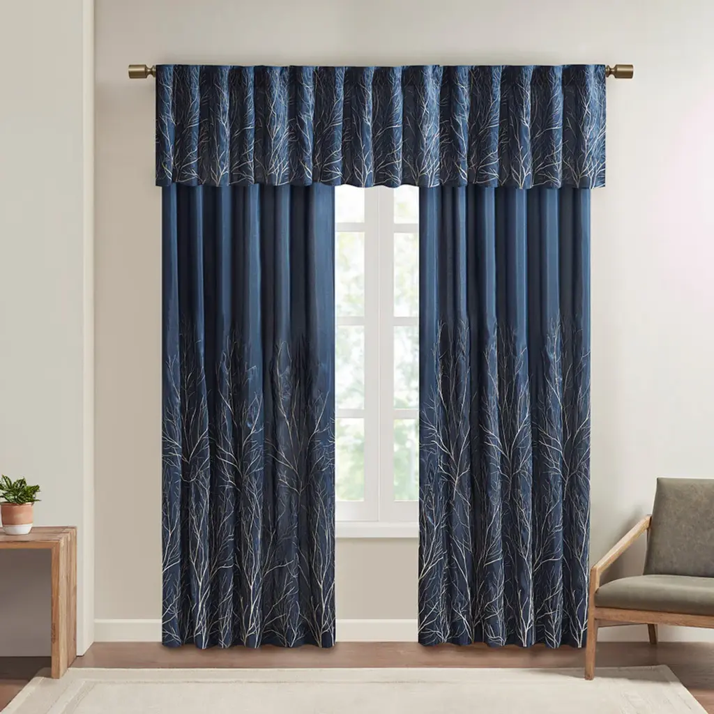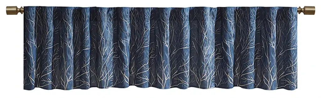 The Madison Park Andora Valance Combines Style And Nature In The Best Way. A Striking Tree Branch Design Is Embroidered On Beautiful Faux Silk, Creating Alluring Contrast And Dimension. The Valance Features Added Lining For More Privacy And Better Drapability, While The Luxurious Sheen Provides A Touch Of Sophistication To Your Decor. Finished With Rod Pocket Top; Fits Up To A 1.25" Diameter Rod. Perfect On Its Own For Small Windows Or Layer With Coordinate Panel Sold Separately For A Complete Look. Due To The Fabrication And All Over Embroidery Design, Some Texture And Crinkle Maybe Left After Steaming (Steam Only, Do Not Iron).50x18"1 Window Valance:50"W x 18"LMaterials:100% Polyester Faux SilkMachine Washable