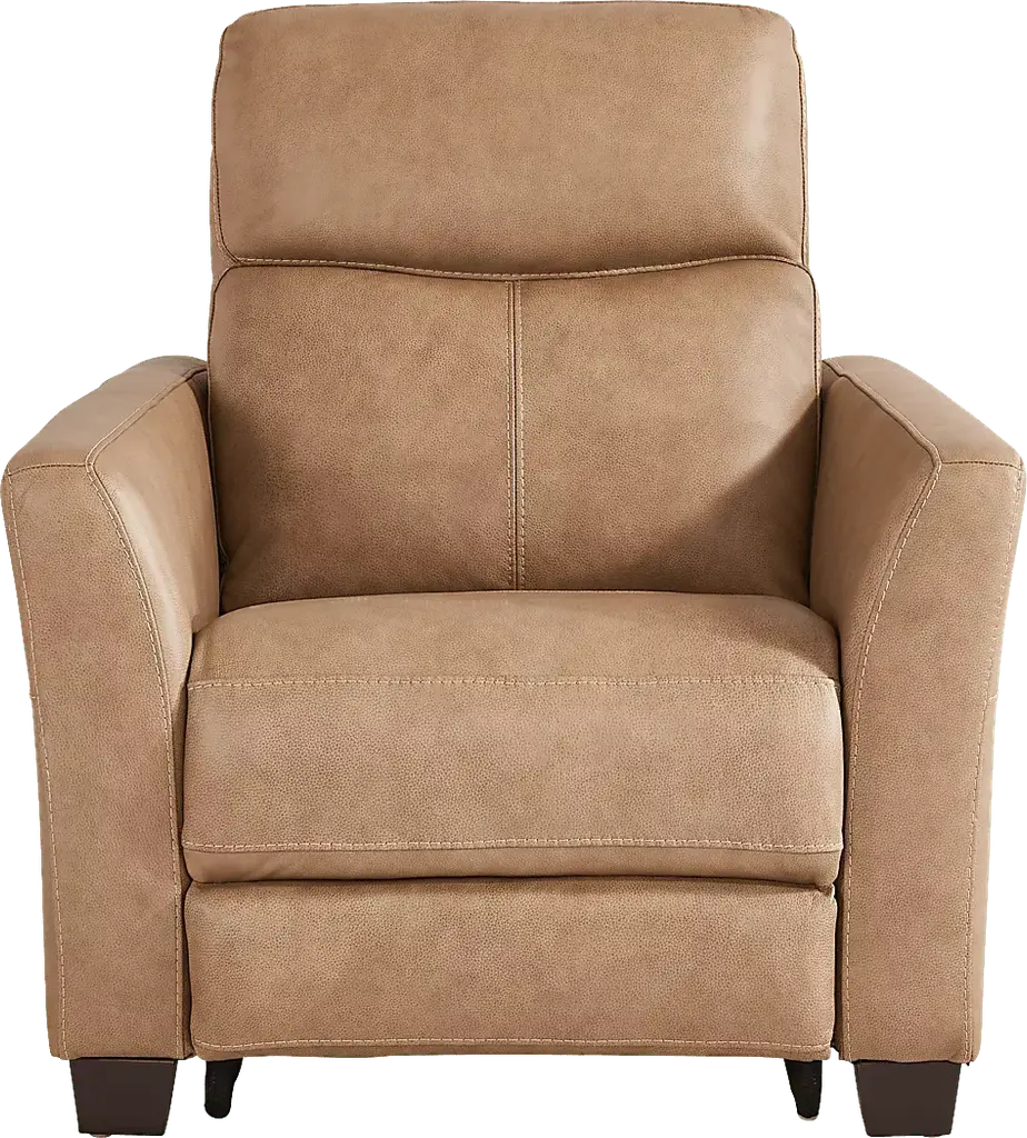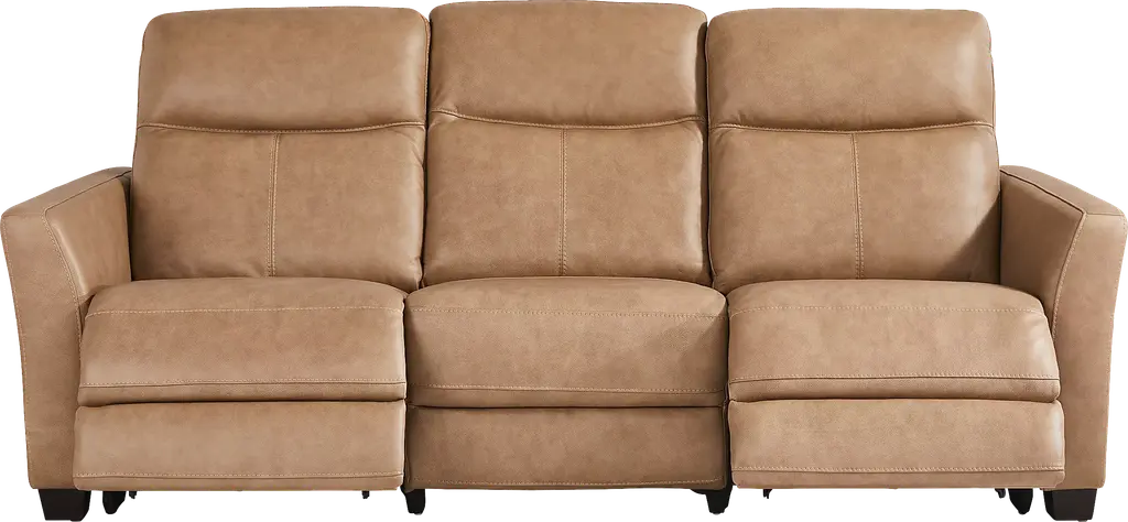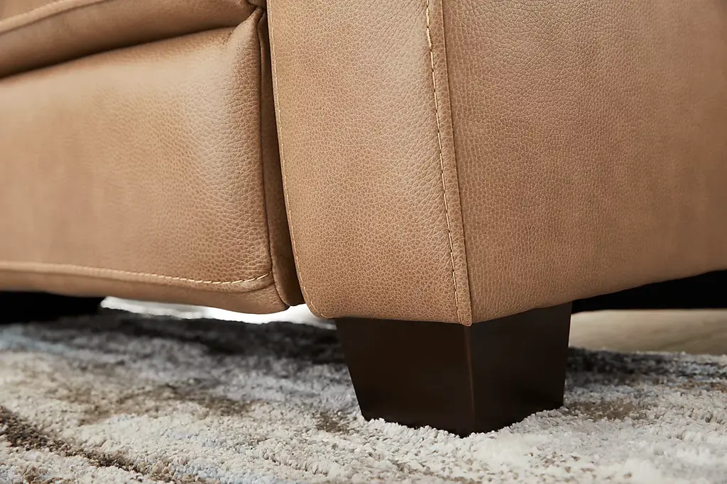 Harmony, comfort and modern elegance fill your room like a melodic symphony with the Maestro collection guiding every note and nuance with effortless flair. Each of the three pieces in this contemporary set include dual power reclining features with head and footrests that can be raised or lowered to any desired position using the integrated control panels. Each panel has a USB port that makes charging to your mobile devices directly from the unit easy and convenient. Upholstered with top grain leather where the body touches in a soothing sand color, the sofa, loveseat and recliner are tailored to perfection with stylish radius arms and top-stitched outer seams. Upholstery: Top grain leather where the body touches and polyurethane fabric sides and backs. Leather is a durable, low maintenance product, however, general regular maintenance is necessary. To keep your leather clean, vacuum it regularly, removing any dust, and clean it with water and a mild non-detergent soap.