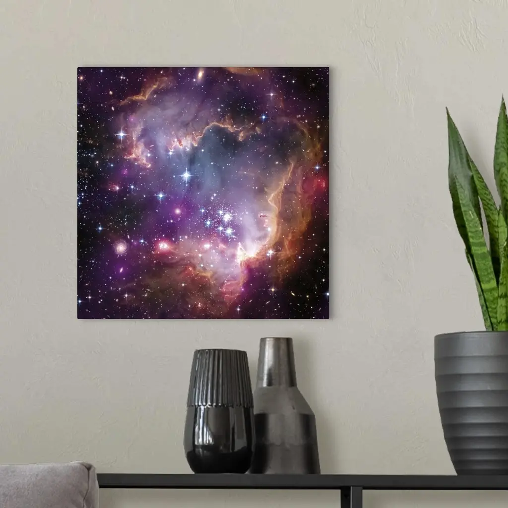 The tip of the 'wing' of the Small Magellanic Cloud galaxy is dazzling in this new view from NASA's Great Observatories. The SMC, is a small galaxy about 200,000 light-years way that orbits our own Milky Way spiral galaxy.