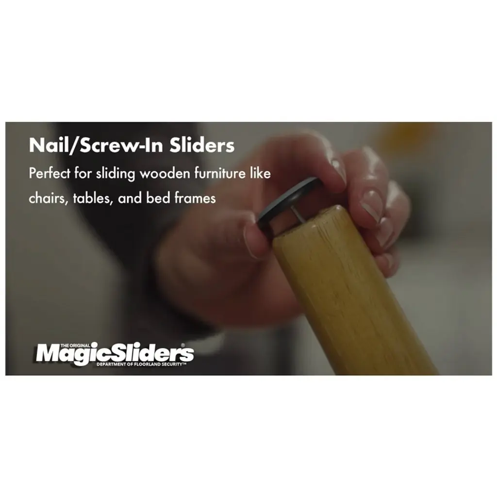 Magic Sliders’ nail-on design offers a permanently attached solution that ensures sliders stay securely fastened, eliminating concerns about slipping, repositioning, or wear over time. They provide smooth, silent movement, allowing heavy furniture to glide effortlessly across floors without scratching, dragging, or causing noise. Ideal for wooden furniture legs, these sliders are perfect for chairs, tables, cabinets, and more, fitting both angled and straight legs with a flush, stable installation. Engineered for durability, they withstand daily use in busy households, offices, and other high-traffic environments, while protecting hardwood, tile, vinyl, and other delicate surfaces from scratches, dents, and scuff marks. With a sleek, low-profile design, they blend discreetly with furniture aesthetics while delivering powerful performance underneath. Built to offer consistent, reliable glide with every move, they resist popping off or sticking even with frequent use. Designed for one-time installation and long-term benefits, Magic Sliders provide a hassle-free, floor-safe solution that lasts for years, making them the ultimate set-it-and-forget-it option for protecting your floors and furniture.