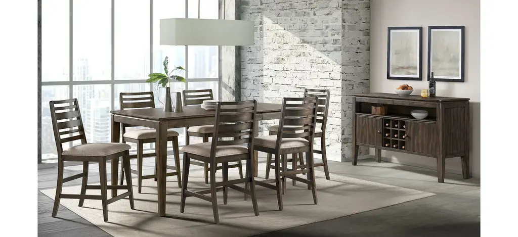 Set an impressive dining scene with the Magna Counter Table. Part of the Magna dining collection with multiple chair opctions, pick the option that fits best for your needs. With the brushed mango wood finish, with rich gray undertones is a fantastic addition to any kitchen or dining room.