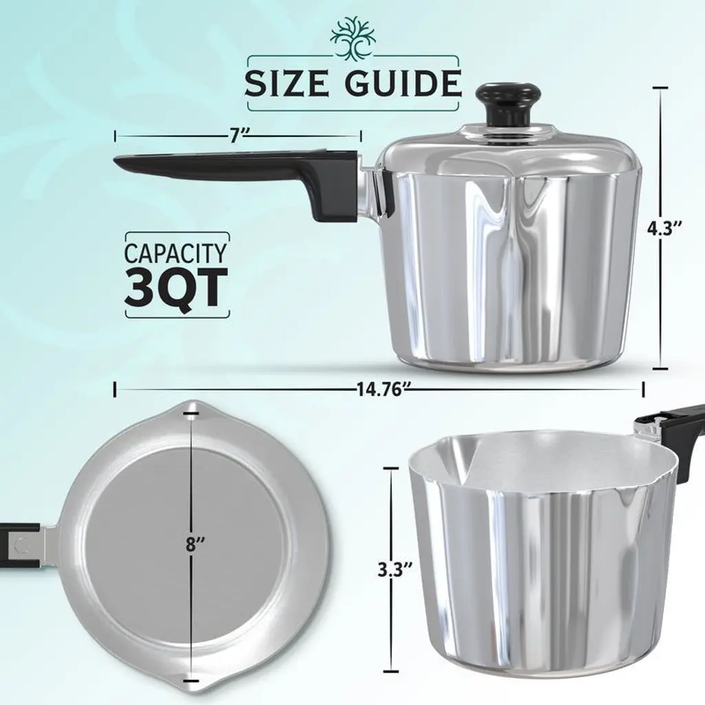 The Magnaware Sauce Pan is your go‑to for flawless sauces, soups, stews, and gravies, thanks to its thick cast aluminum walls and base that ensure even heat and no hot spots. Its polished aluminum exterior and natural interior finish bring classic elegance to your kitchen, while the sturdy, heirloom‑quality construction is built to last for generations. Designed for comfort and safety, the stay‑cool handles make handling hot dishes effortless. Available in 2‑, 3‑, and 4‑quart sizes, this versatile saucepan is perfect for everything from delicate sauces to hearty family favorites.