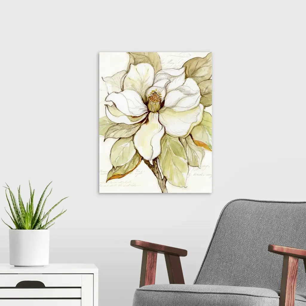 The elegant magnolia gets star treatment here. Stunning form and a soft neutral palette.