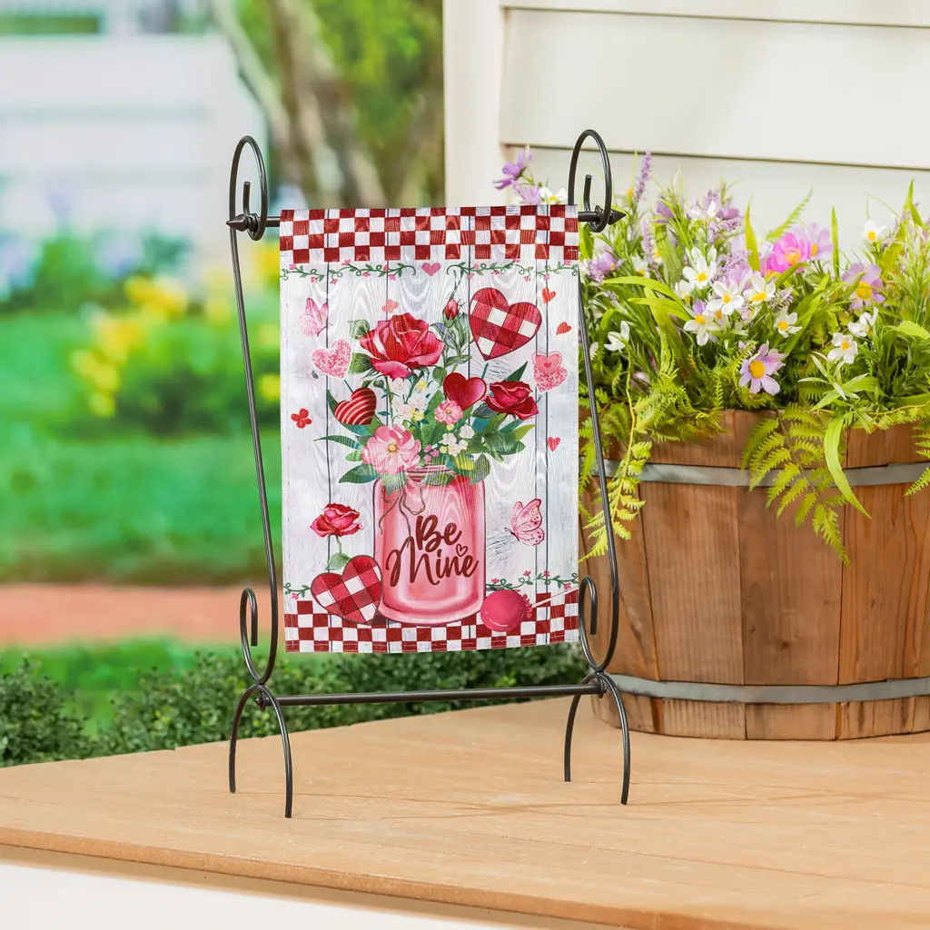 This garden flag by Magnolia Garden is designed with a combination of fabric appliques and exquisitely detailed embroidery on both the front and back; Flagpole sold separately. Features the phrase, "Happy Valentine's Day" in trendy font surrounding a scene of two white lovebirds holding an envelope sealed with a heart; The red flag is decorated with pink and white hearts and flowers. Made of quality polyester double thickness material; These flags are heavier than most others on the market and will hold up for longer, They will retain its color and beauty for years if displayed in shade or semi-shade, and is rainproof; Measures approximately 29 inches wide and 42 inches tall. Perfect for displaying in a garden, on its own or as part of a garden display year-round; Fits most standard garden poles, sold separately; Care Instructions: Handwash in cold water, Air dry with no heat. Contained in protective packaging; Ready for easy gifting for a housewarming, birthday, or any special occasion