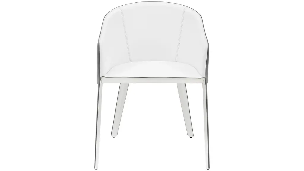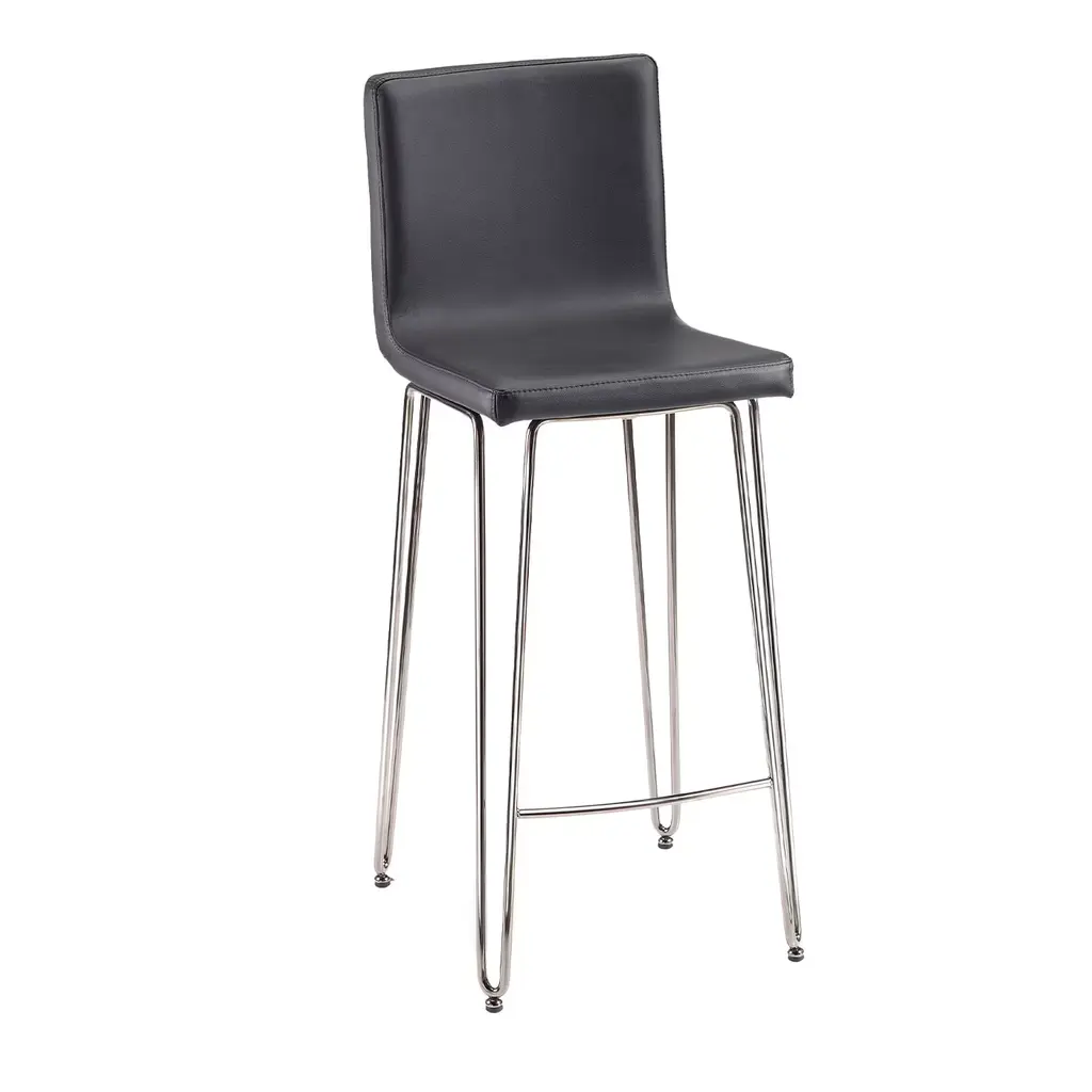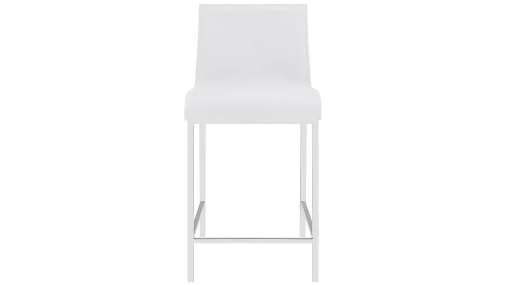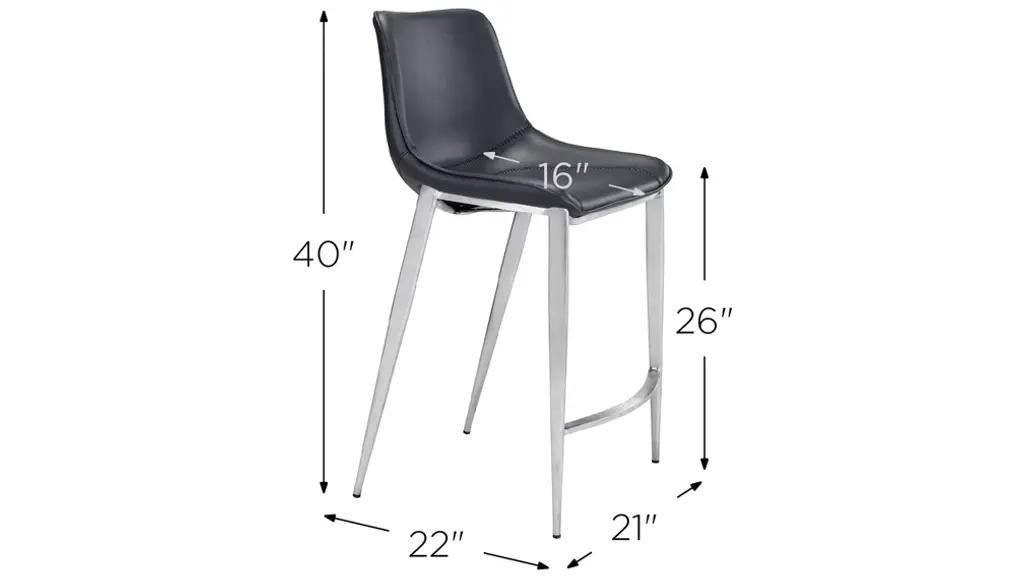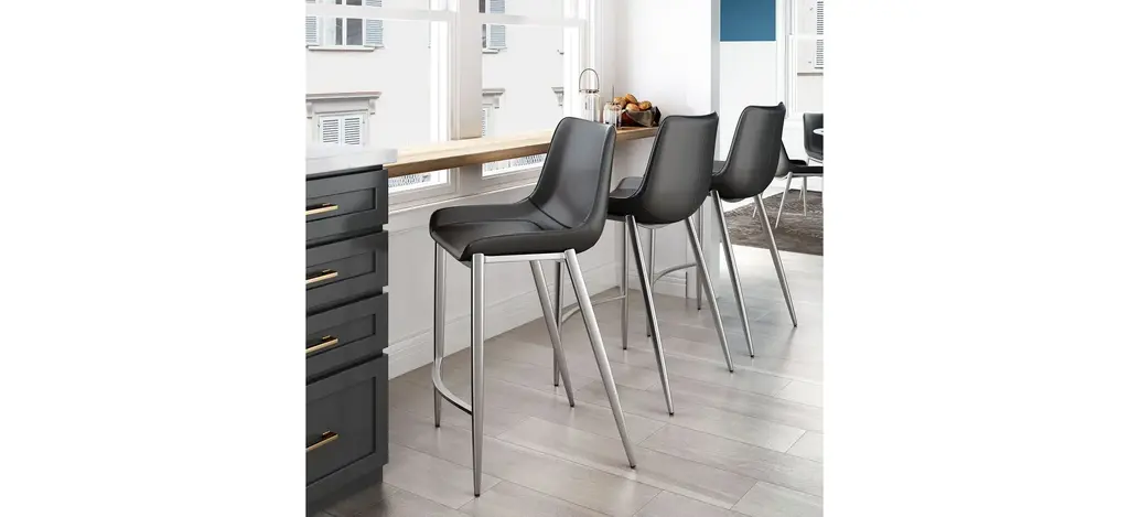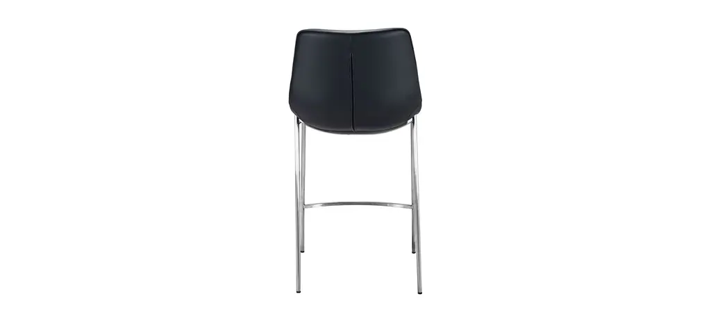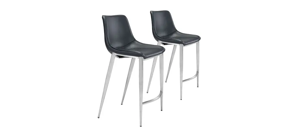 The Magnus Counter-Height Stool: set of 2 with its slim profile pulls up perfectly to the bar. Its super comfortable curved seat is covered in faux leather with dramatic stitching.