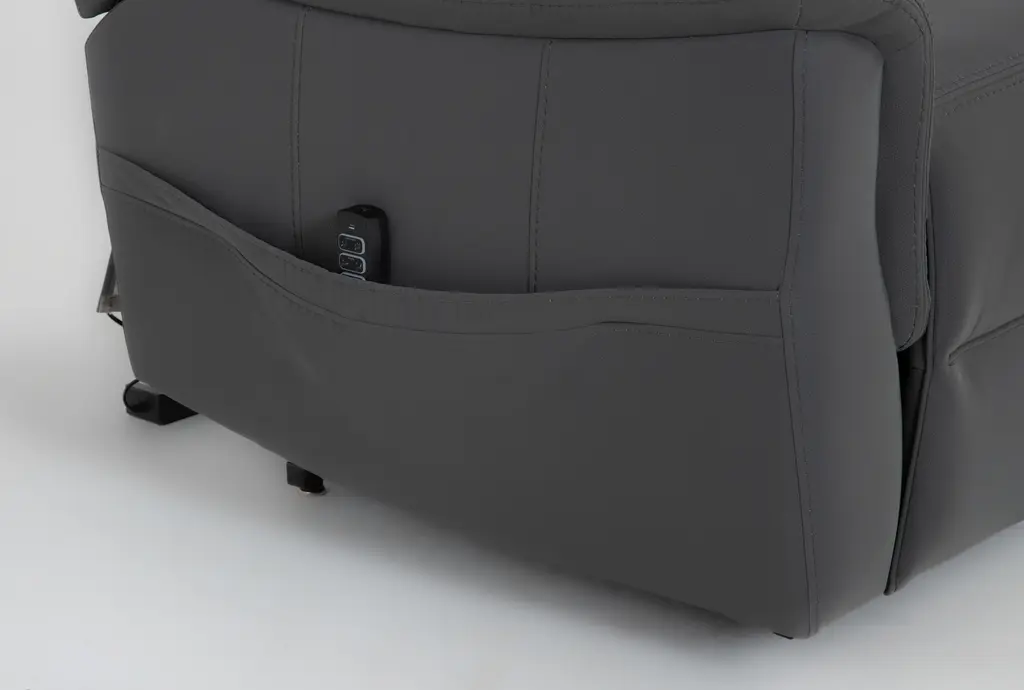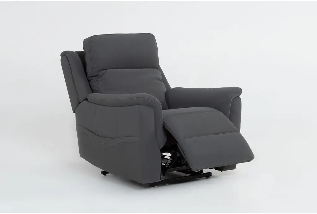 Made exclusively for Living Spaces by Flexsteel, our Magnus power lift recliner with power headrest exhibits an impressive range of motion to inspire relief and relaxation. A hand wand control with USB allows you to fully recline and lift into a standing position at the press of a button. You can even reach zero gravity, which improves circulation and reduces pressure. Flexsteel's patented Blue Steel Spring™ seat system and seat cushion featuring memory foam offer exceptional durability and support. Easy to clean, high-performance fabric provides handsome coverage. Thanks to side pockets, you have a place to store the hand wand control, as well as magazines, remotes and other accessories.