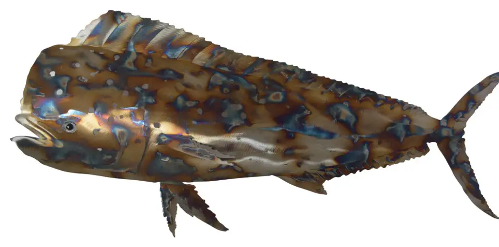 Mahi-Mahi Fish Laser Cut Steel Wall Mounted - Size: 26"l X 2"w X 14"h.