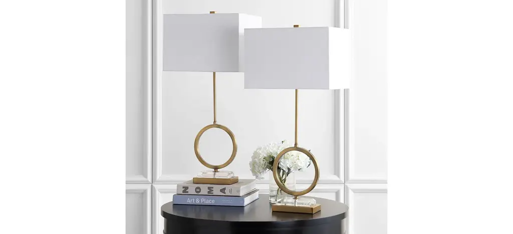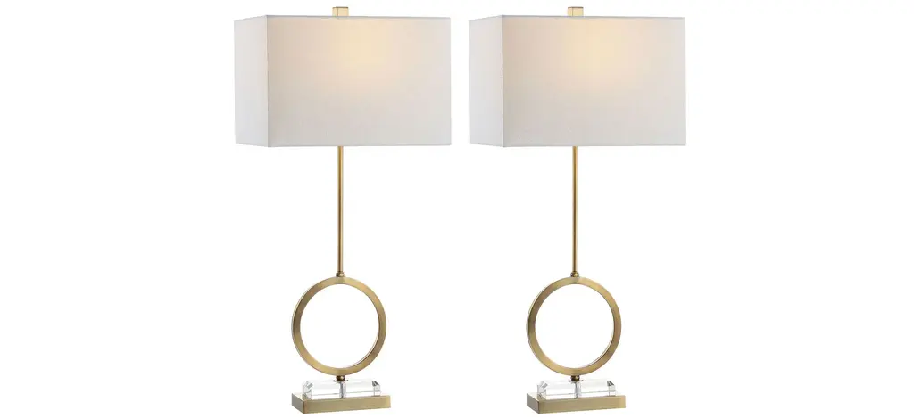 The negative space of a perfect circle lends creative interest to any space with the Maison Table Lamp Set. Perfect for Art Deco decor or other clean lined furnishings, Maison's fascinating geometry, brass body, and cotton shade are must haves for lovers of art inspired interiors. Sold in sets of two.