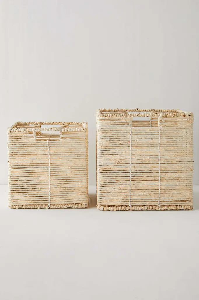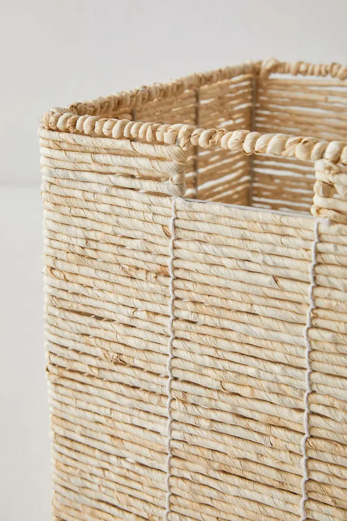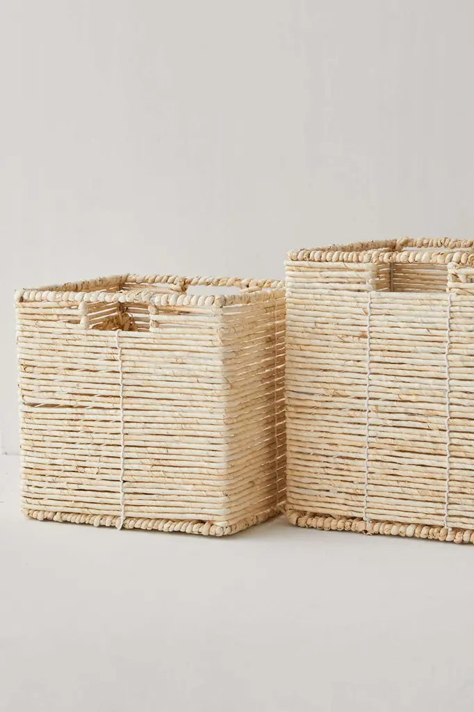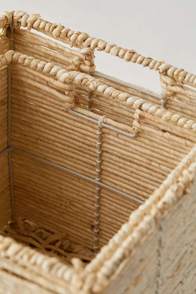 Organize your belongings with natural boho style in this square-shaped storage basket crafted from dried corn husk leaves. Equipped with rectangular cutout handles so you can easily carry from space to space. **Features** \- Boho Maiz Square Storage Basket \- Storage container wrapped in dried corn husk leaves \- Rectangular cutout handles to easily move throughout your space \- One-of-a-kind, each storage container has natural variance \- Available in multiple sizes - mix and match to create your own set of storage essentials **Content + Care** \- Dried corn husk leaves \- Wipe clean \- Imported **Size** 11" \- Dimensions: 11"l x 11"w x 11"h \- Weight: 4.84 lbs \- Shipping package dimensions: 14"l x 14"w x 14"h \- Shipping package weight: 5 lbs 13" \- Dimensions: 13"l x 13"w x 13"h \- Weight: 5.61 lbs \- Shipping package dimensions: 14"l x 14"w x 14"h \- Shipping package weight: 6 lbs