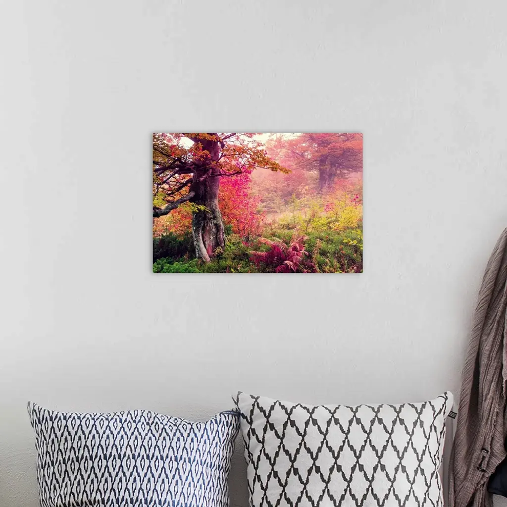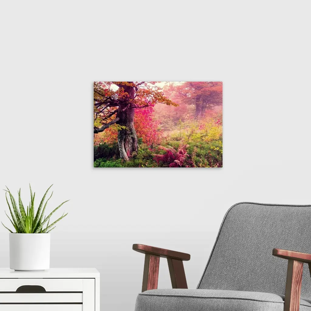 Majestic landscape with autumn trees in forest. Carpathian, Ukraine, Europe.