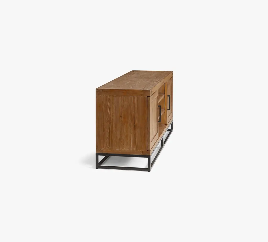 An antique Chinese door served as the inspiration for our Malcolm Collection. Expertly crafted of spruce, the rustic look of the wood contrasts handsomely with a modern metal base. With a mix of open shelving and enclosed storage, there is room for curated moments while keeping clutter out of sight.