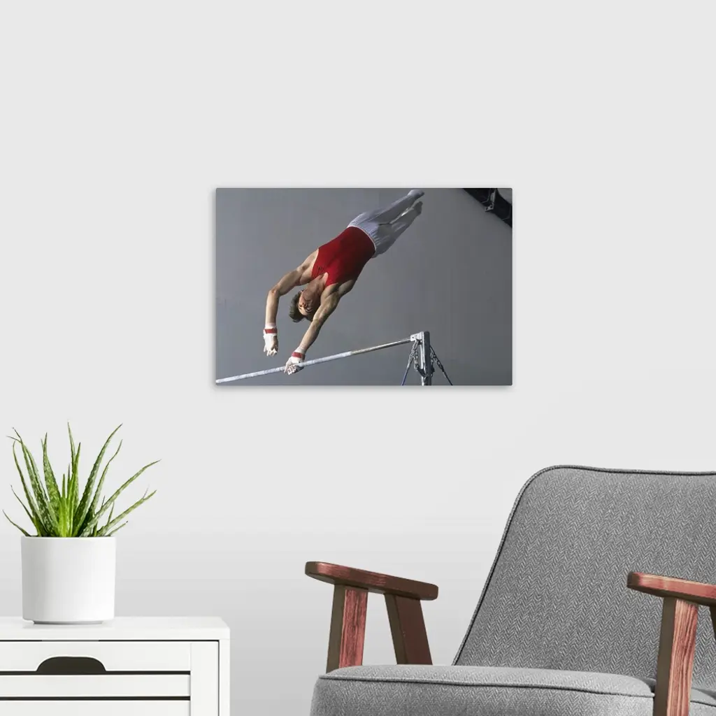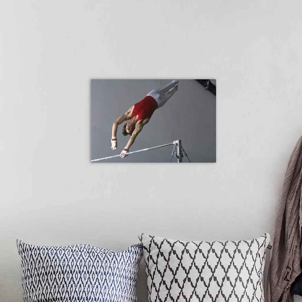 Male gymnast on the horizontal bar wall art for home and office decor. Discover canvas art prints, photos, mural, big canvas art and framed wall art in GreatBigCanvas.com's varied collections.