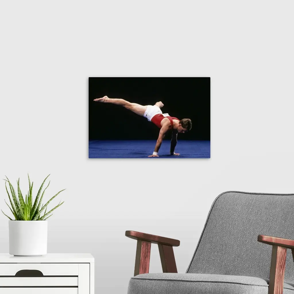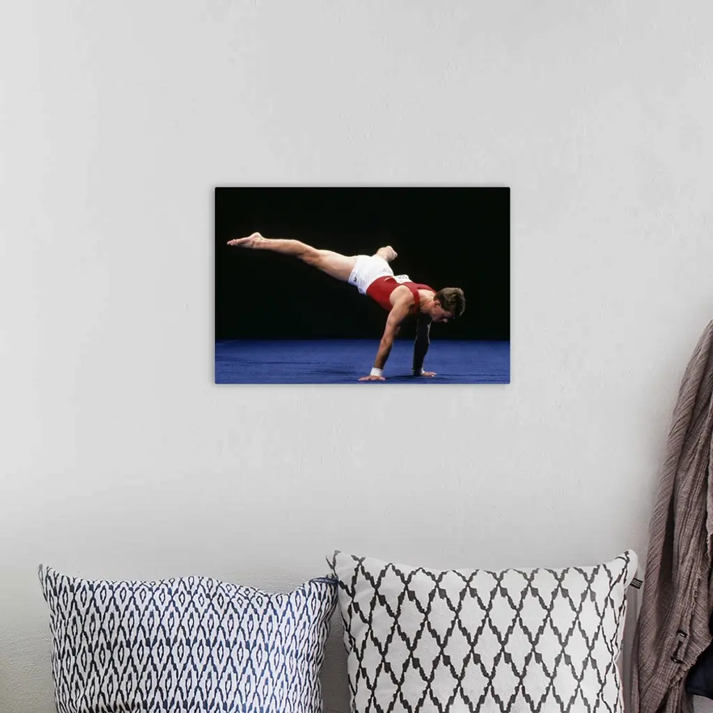 Male gymnast peforming a routine in the floor exercise wall art for home and office decor. Discover canvas art prints, photos, mural, big canvas art and framed wall art in GreatBigCanvas.com's varied collections.