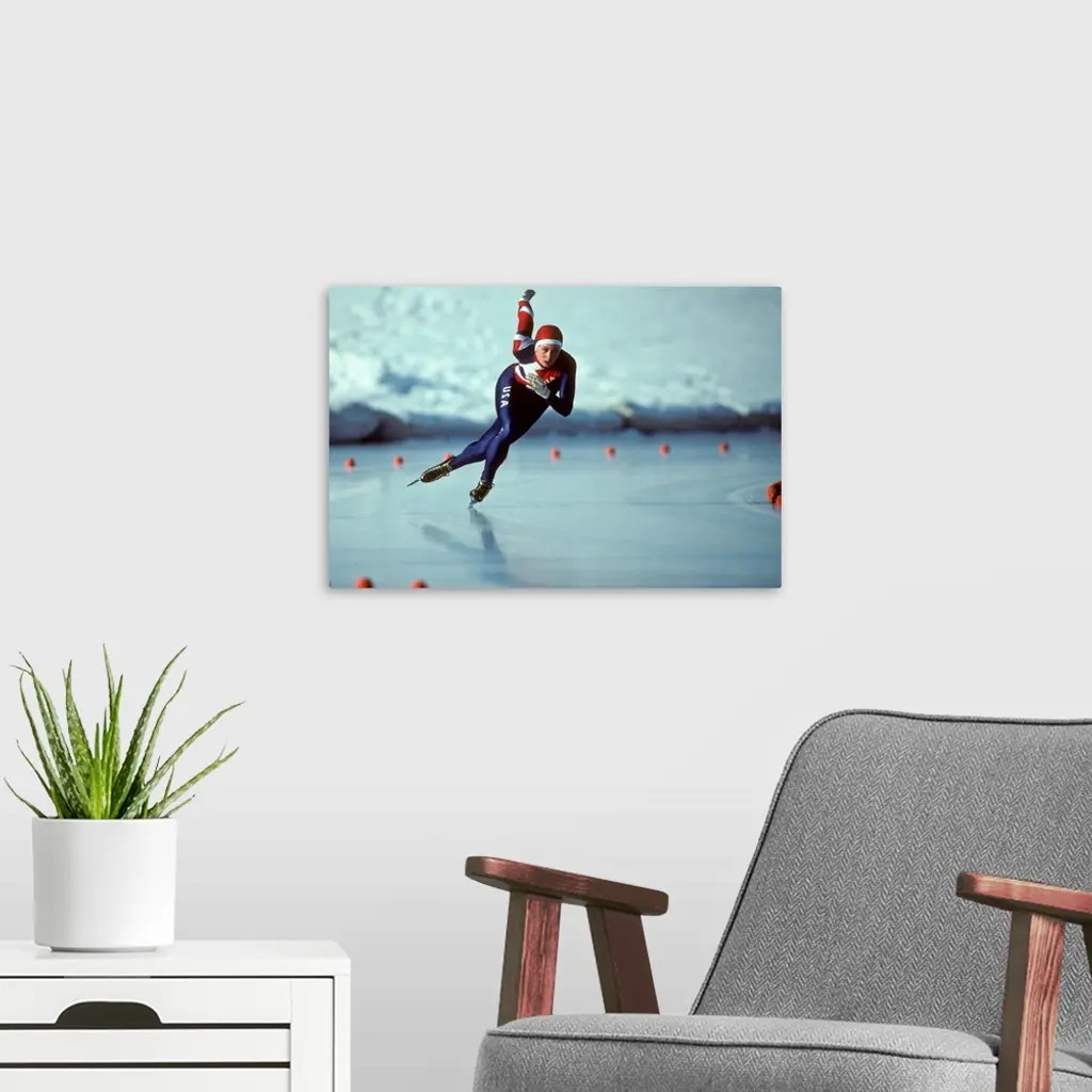Male speed skater in action wall art for home and office decor. Discover canvas art prints, photos, mural, big canvas art and framed wall art in GreatBigCanvas.com's varied collections.