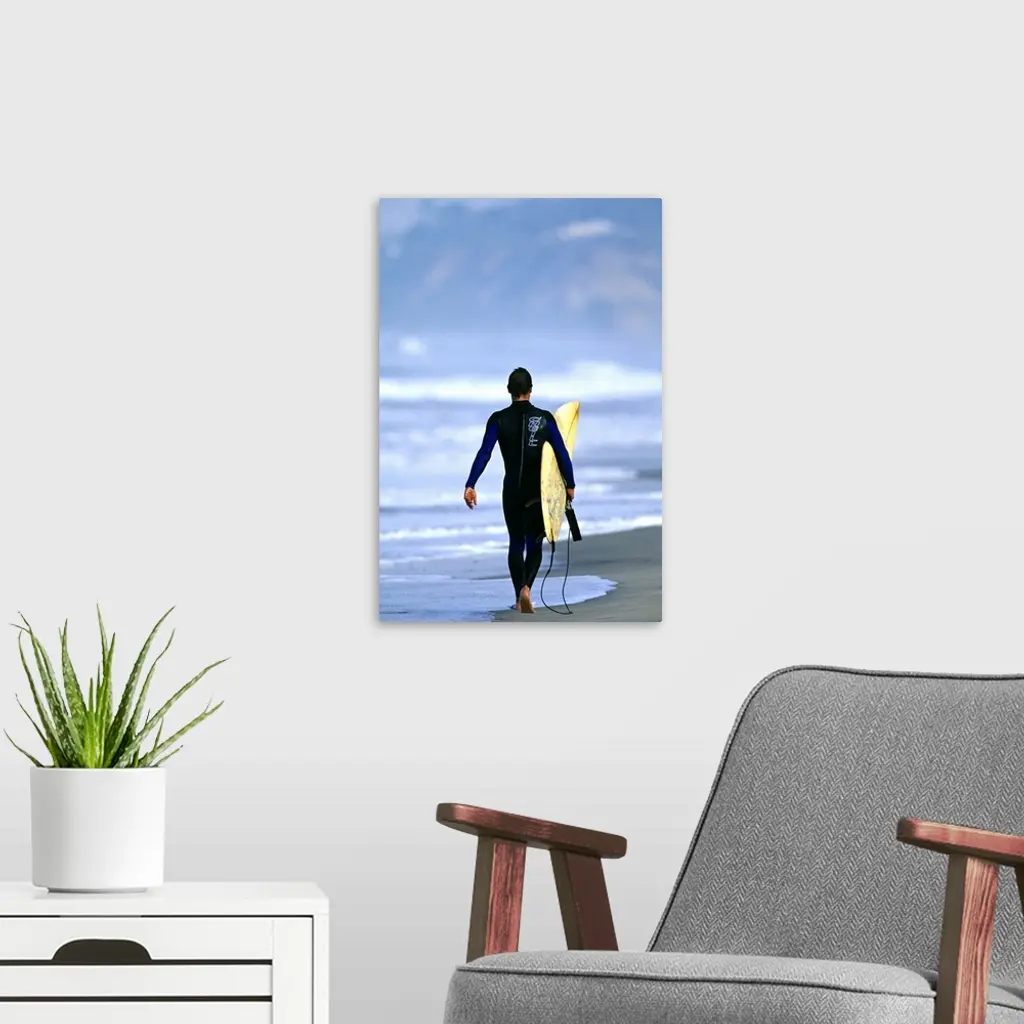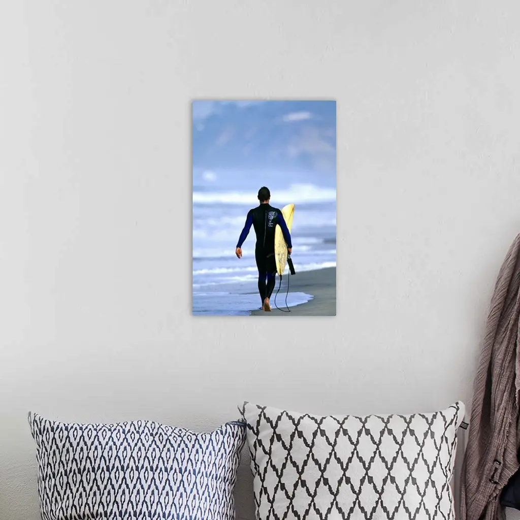 Male surfer walking on the beach in San Diego, CA wall art for home and office decor. Discover canvas art prints, photos, mural, big canvas art and framed wall art in GreatBigCanvas.com's varied collections.