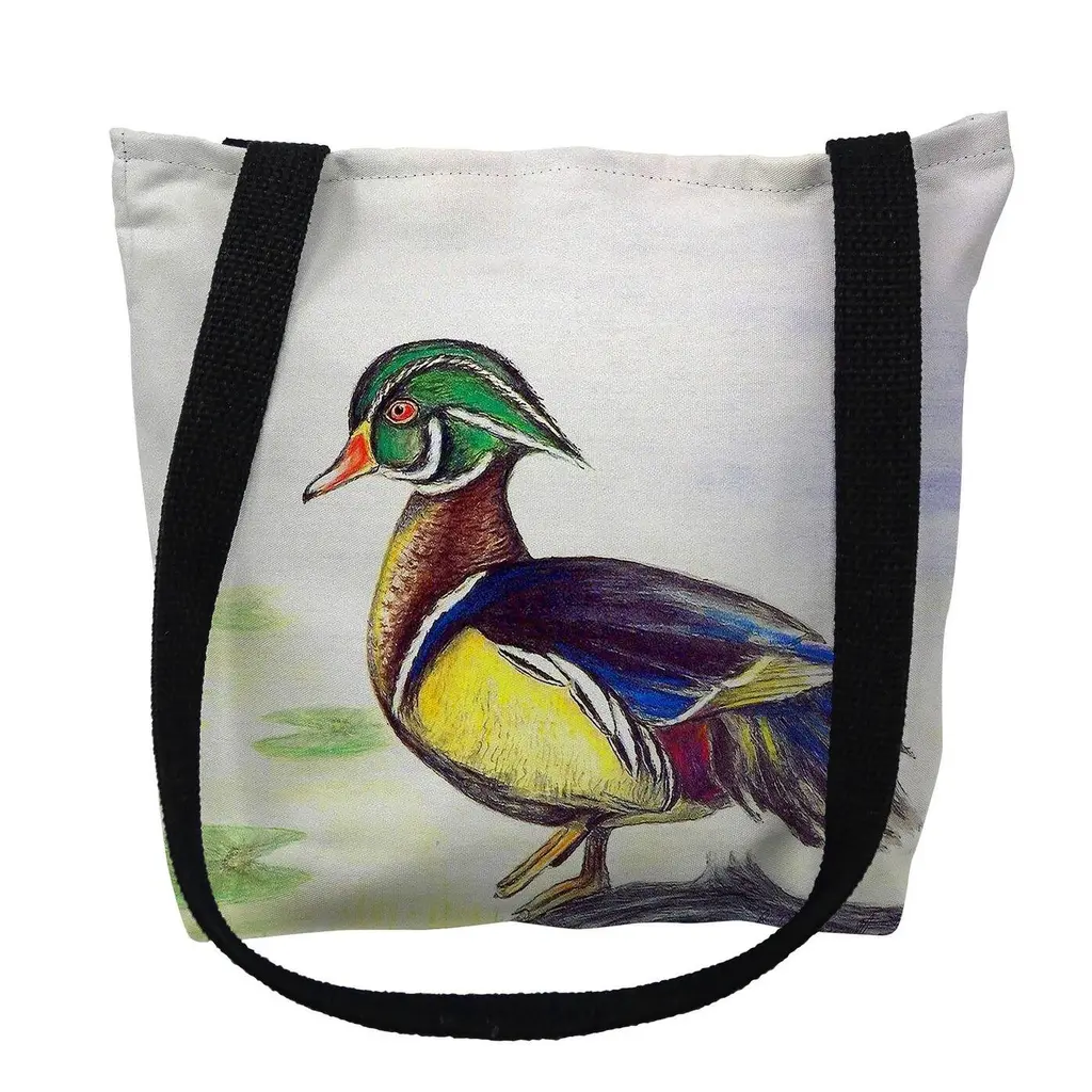 Male Wood Duck Beige Script Small Tote Bag 13x13 - 18 Inches X 18 Inches