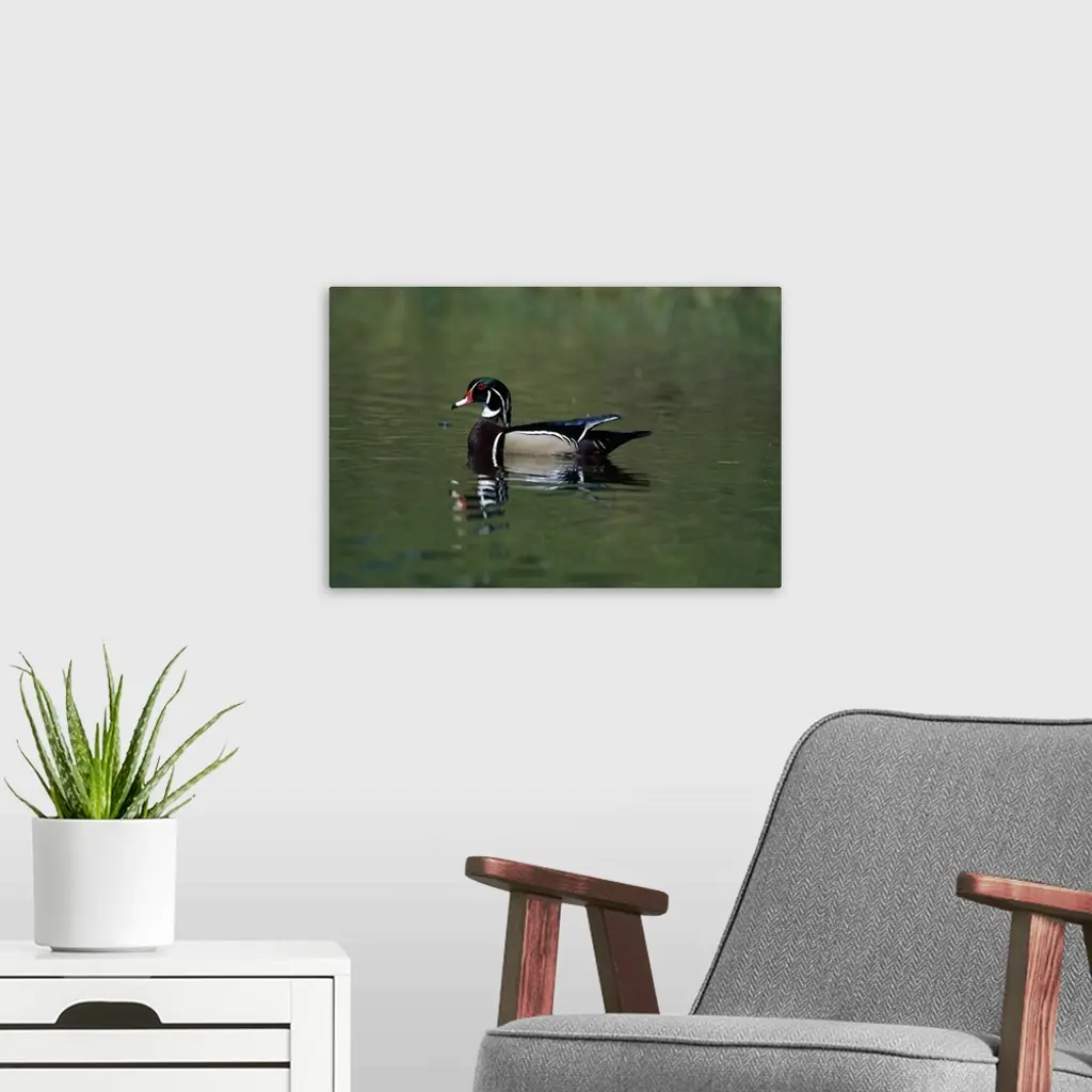 Male Wood Duck On Sandy River wall art for home and office decor. Discover canvas art prints, photos, mural, big canvas art and framed wall art in GreatBigCanvas.com's varied collections.