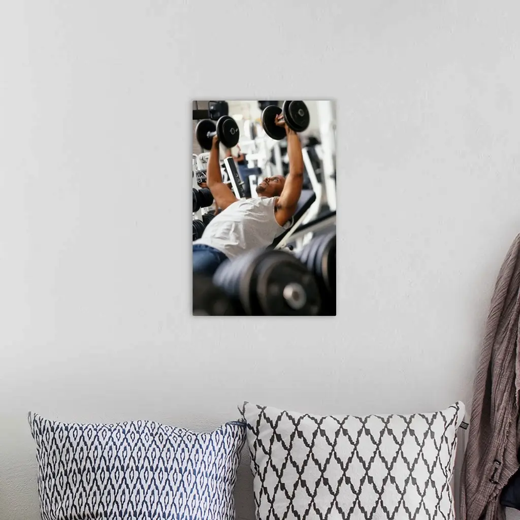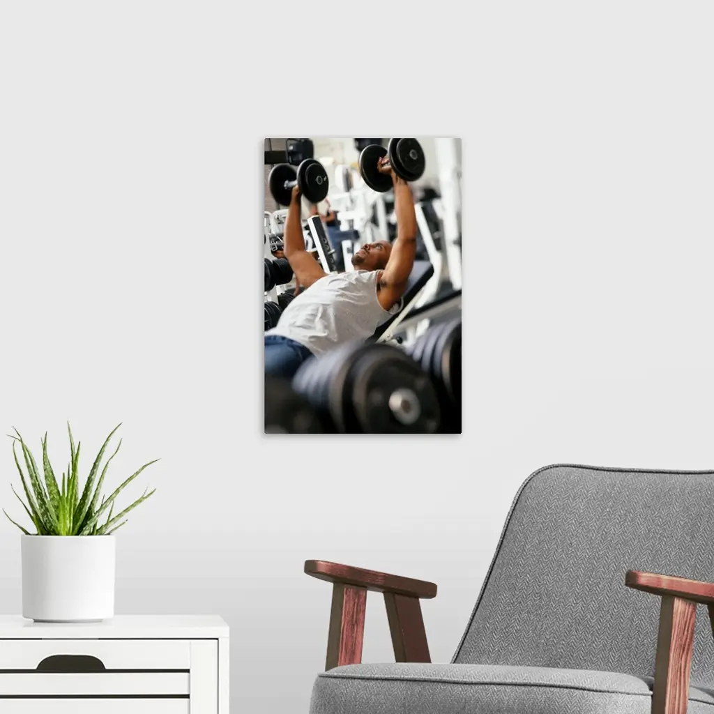 Male Working Out With Weights In A Health Club
