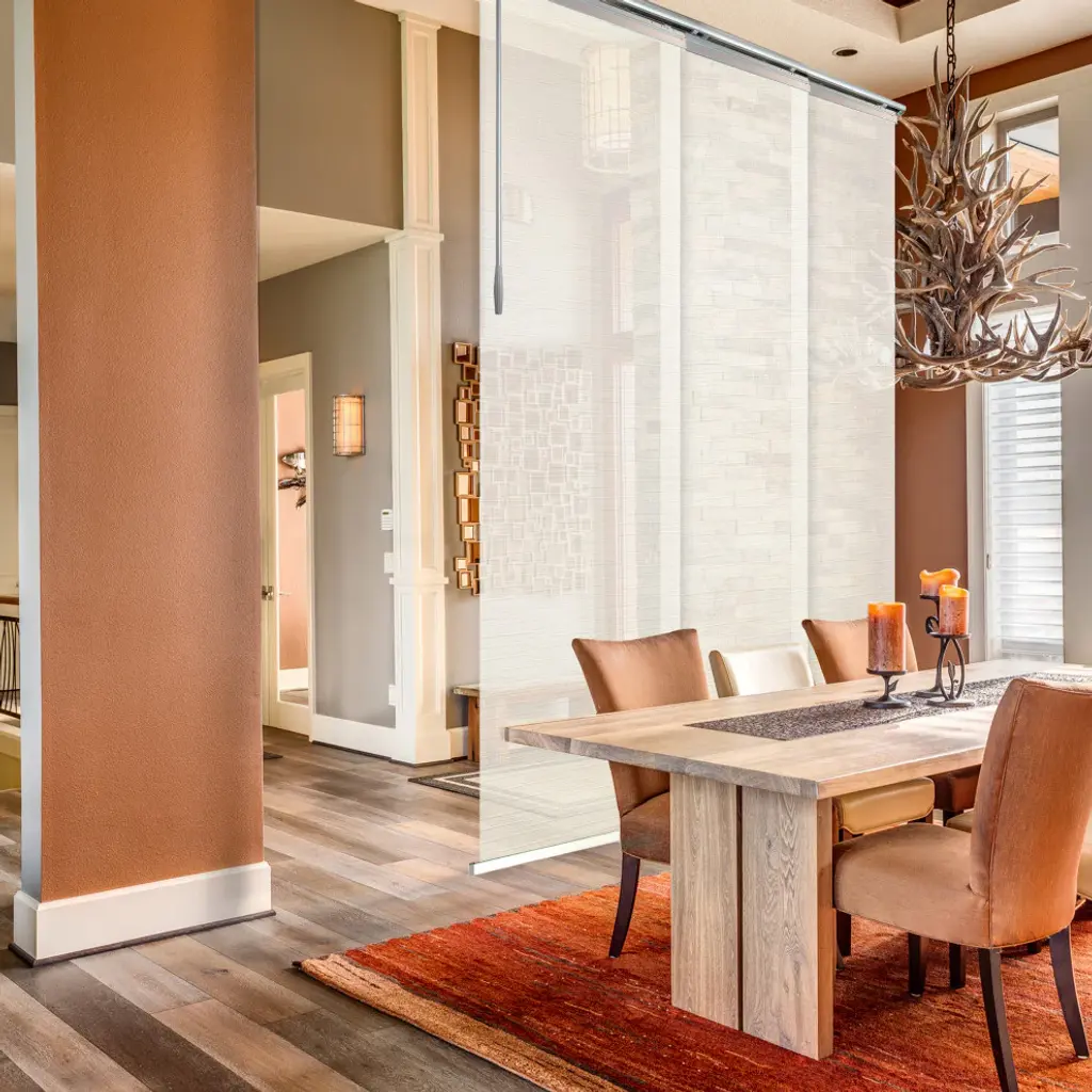 Central Design Products is pleased to introduce a new innovative panel track that offers easy 2-way installation, adding an alluring style and refined touch to your home decor. The single rail design of the track is sleek, compact, and reduces the overall footprint and weight of the installation, eliminating bulky, intrusive window treatments. Adjusting the panel height is a breeze � simply trim the panel, re-attach the liner, and install the panel weight. Detailed instructions are included.The panel track also features a patented slider design, made with aluminum and fitted with bearings that allow for durable and smooth operation. The sliders are stacked closer together than conventional panel tracks, reducing light bleed coming from the gaps between panels. This track has endless uses from dividing rooms, garages, offices, and closets to decorating windows and patios. Available in larger sizes including 8, 10, and 12 panels. Extends from 36-66� wide. Each panel measures 23.5" wide and 116" tall, with a total installation height of 118.5" (includes the 2.5" rail track). The track can be wall or ceiling mounted. The panels can stack on the left or the right. The clearance from the wall is extendable from 1.25� to 3.25� and projection from the wall is extendable from 3� to 4.25�. Malia panel is made from 69% Vinyl 31% Polyester, with a light filtering shade that blocks 50% of the light.