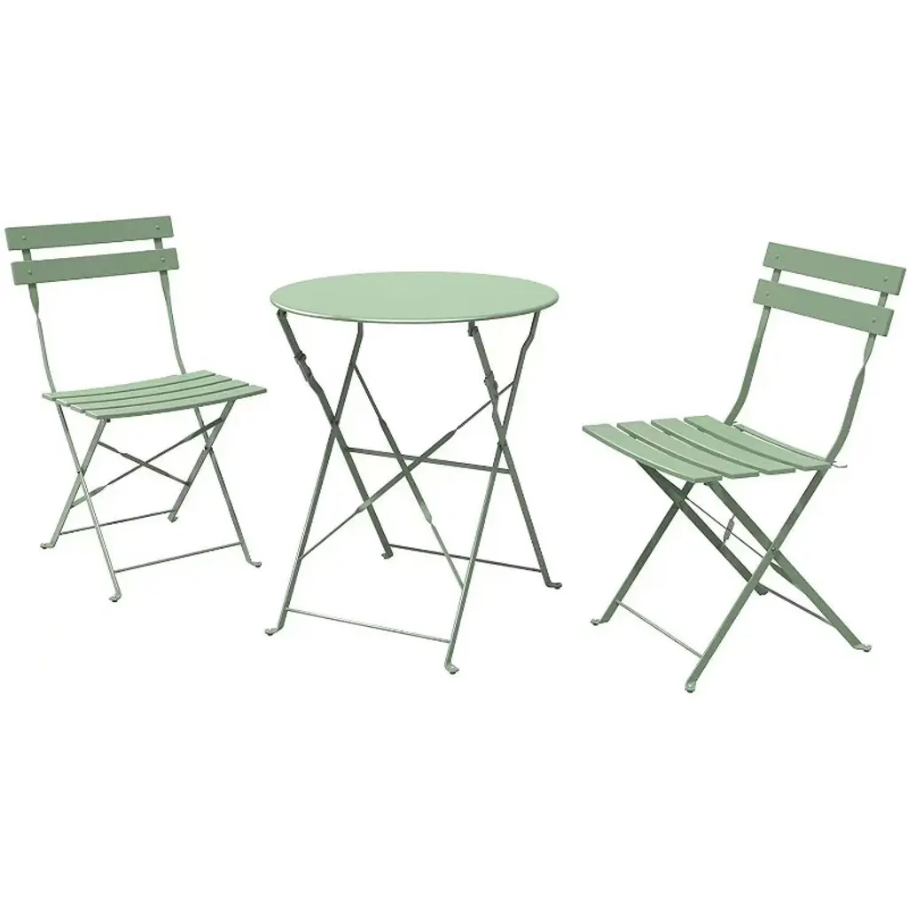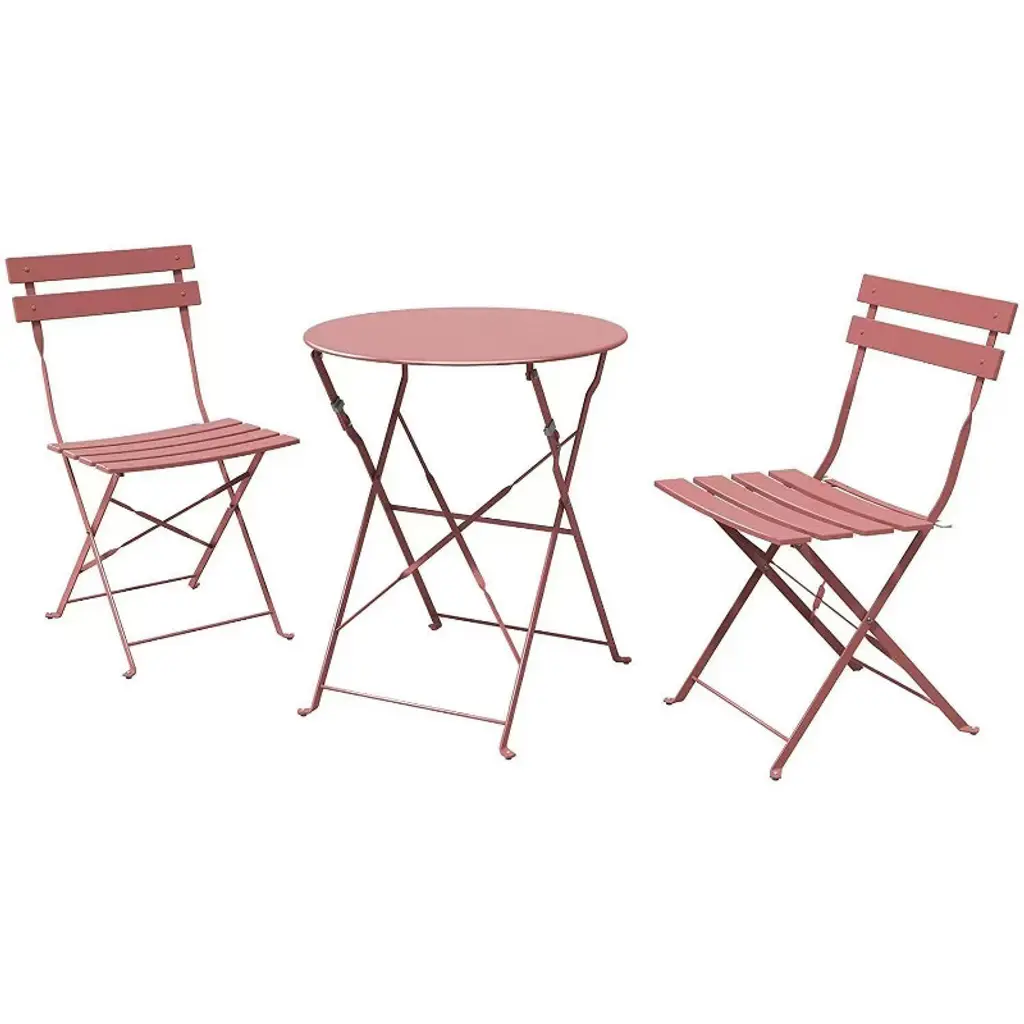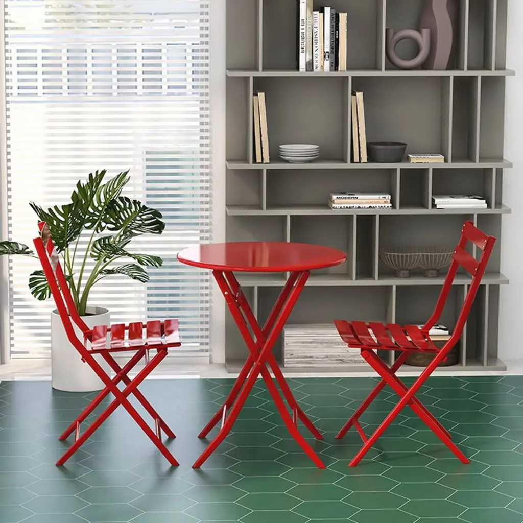 This 3-piece patio bistro set includes 2 folding chairs and 1 round table, featuring a stylish design with wide, thick bars for comfort and sturdiness. The vibrant colors suit both indoor and outdoor spaces, while the powder-coated metal frame ensures durability and rust resistance. The set arrives fully assembled for instant use and offers space-saving folding convenience.