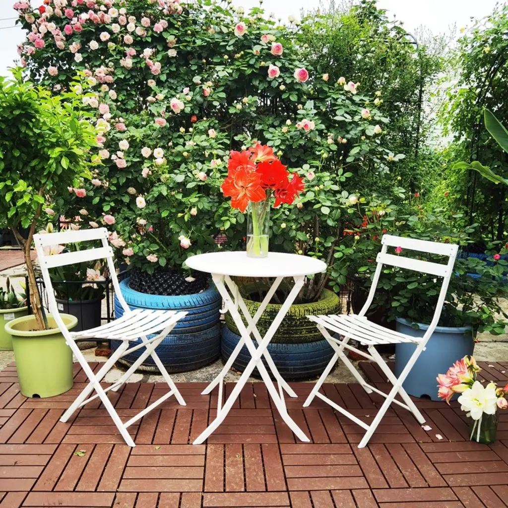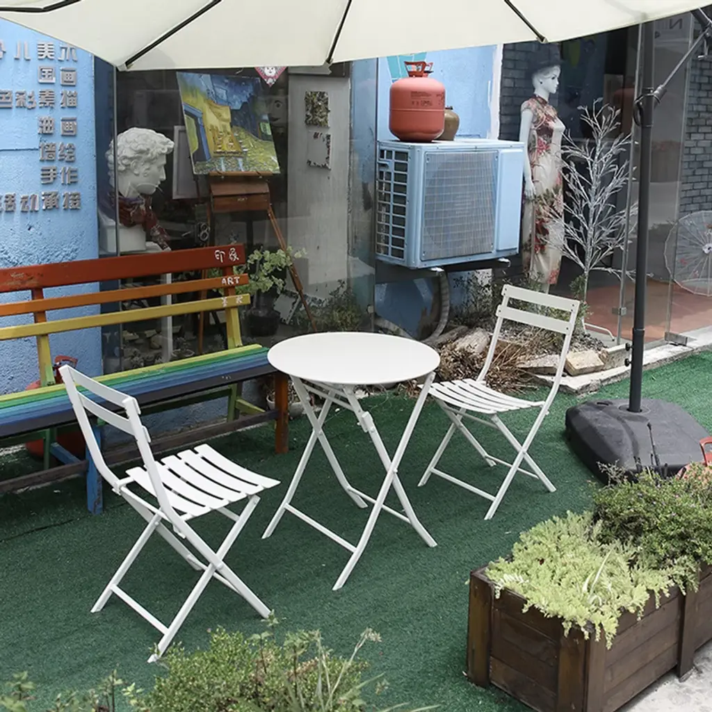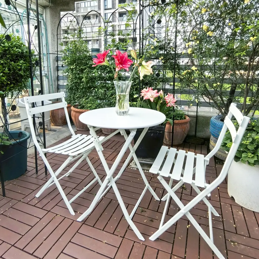 This 3-piece patio bistro set includes 2 folding chairs and 1 round table, featuring a stylish design with wide, thick bars for comfort and sturdiness. The vibrant colors suit both indoor and outdoor spaces, while the powder-coated metal frame ensures durability and rust resistance. The set arrives fully assembled for instant use and offers space-saving folding convenience.
