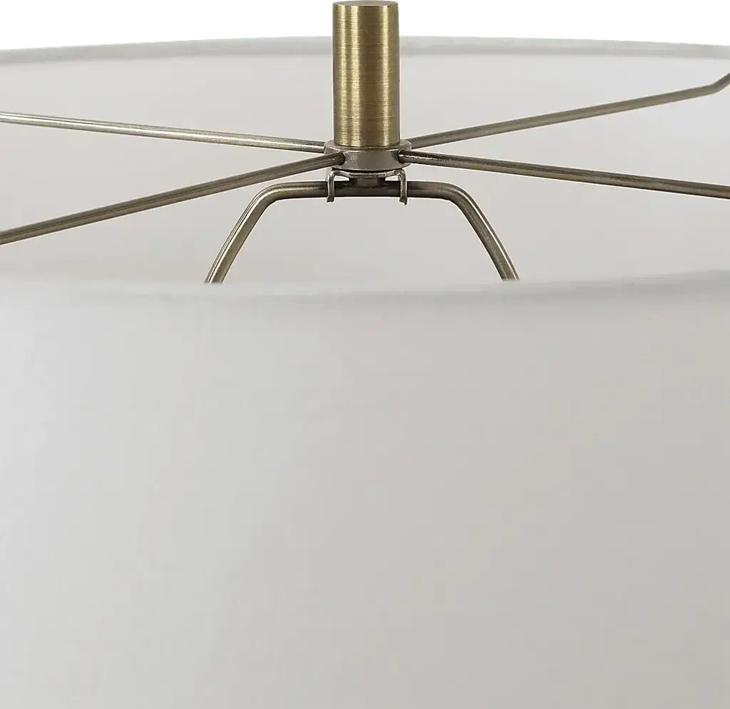 Where artisanal charm meets timeless elegance, the Mallina Loop Terracotta Lamp is crafted from terracotta and features organic texture and a graceful vase-like shape. Enhanced by plated brushed antique brass details, this lamp exudes warmth and sophistication, making it a perfect addition to both contemporary and traditional interiors. A round drum hardback shade in crisp white linen completes the piece. Partial assembly may be required.