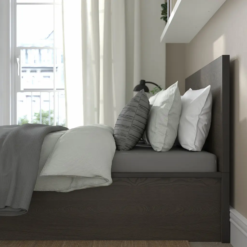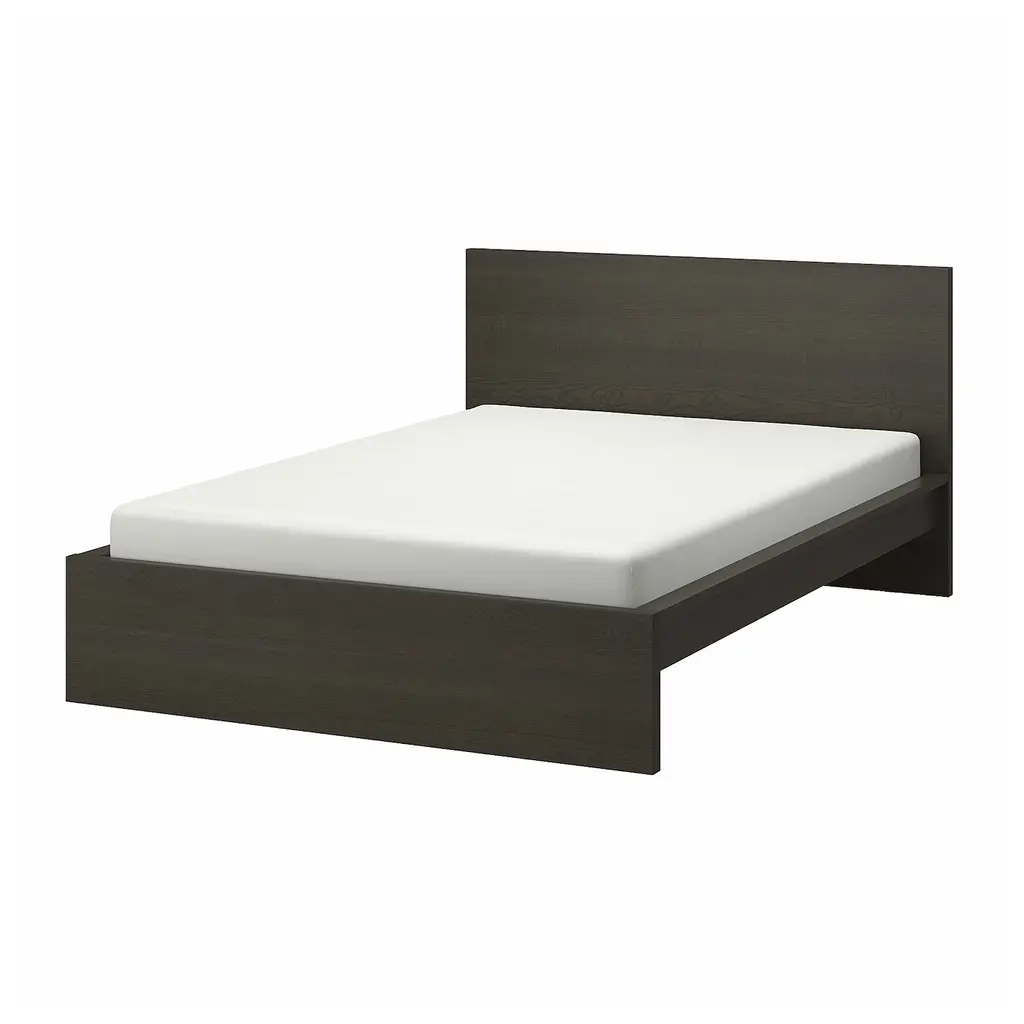 MALM Storage bed - dark brown veneer Full. The storage space under the bed holds everything from extra duvets and pillows to seasonal clothes. Or why not the ironing board? Wood veneer gives you the same look, feel and beauty as solid wood with unique variations in grain, color and texture.