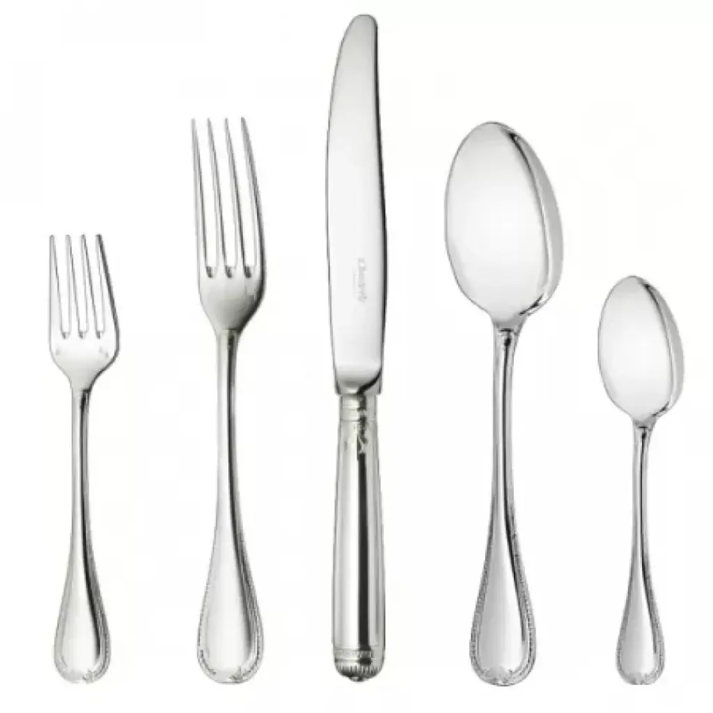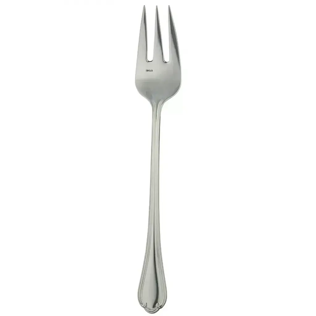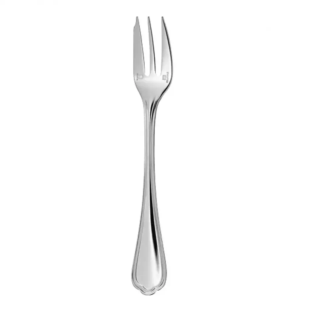 The silver plated cake fork in the Malmaison pattern has a wide edge designed especially for cutting cake and pie on the plate. One of Christofle's most historic patterns, Malmaison typifies the Empire style, with its frieze of delicate palm and lotus leaves and symmetrical design. The name is a nod to the Chateau de la Malmaison, a favored Parisian residence of Napoleon Bonaparte and Empress Josephine. Launched in 1967, the frieze of delicate palm & lotus leaves decorating the flatware are typical of the Empire style. Thanks to its creations in silver, Christofle is a symbol of luxury and elegance. Since its founding in the mid-19th century, it has been a continous innovative force and has infused each era with a new art of living. Thus, over time, this prestigious company has revolutionized styles, techniques, and methods for the production and distribution of silver plate and the decorative arts. A player in and privileged witness to the evolution of taste, customs, and traditions, Christofle has always seen its name associated with major creative trends, renowned artists such as Man Ray or Jean Cocteau, avant-garde architects such as Gio Ponti, and modernist silversmiths such as Lino Sabattini and Christian Fjerdingsatd, as well as present-day designers such as Andrée Putman, Martin Szekely or Ora ïto. Today, as in the past, whether gracing the tables of emperors, princes, or maharajas, in palaces, on board the Trans-Siberian Railway, Orient Express, or transatlantic ocean liners, or in the contemporary restaurants, Christofle continues to make an impression.