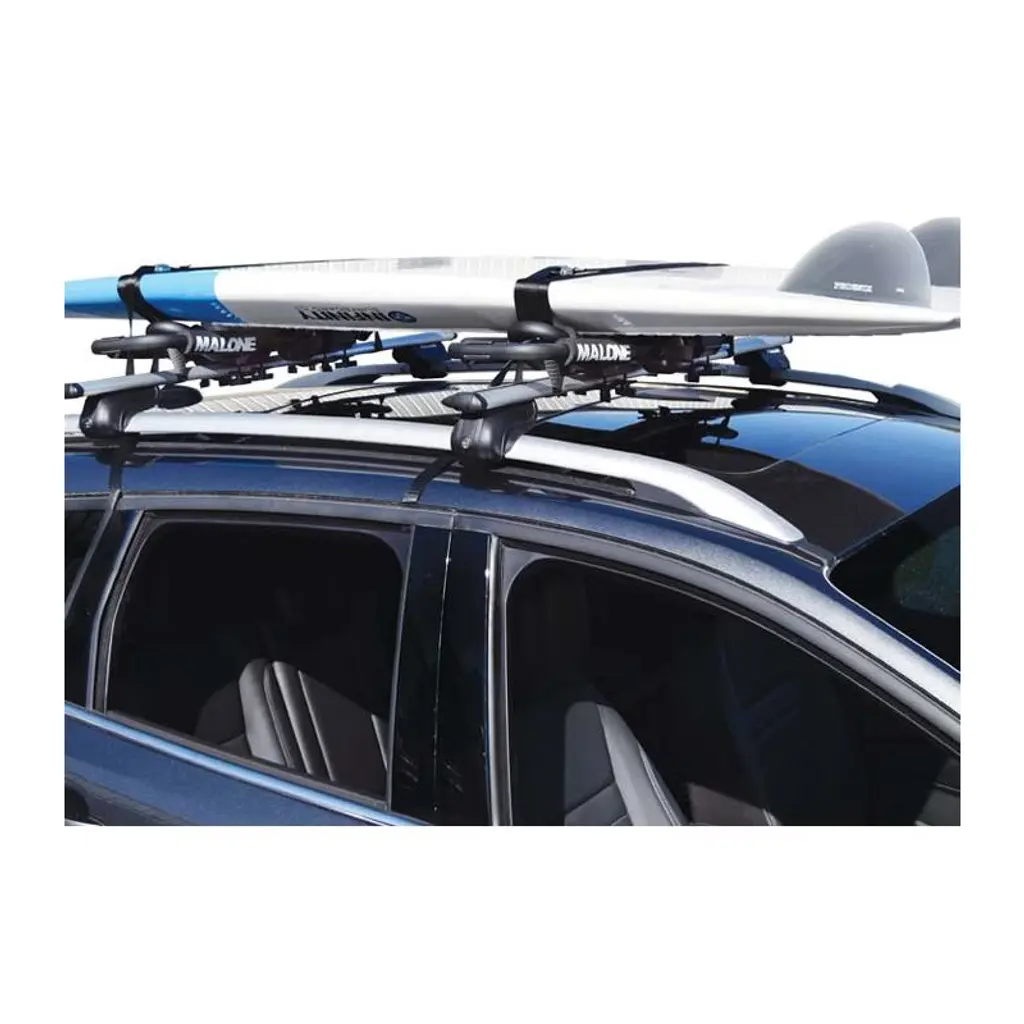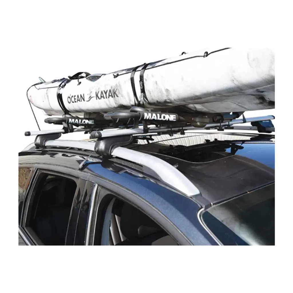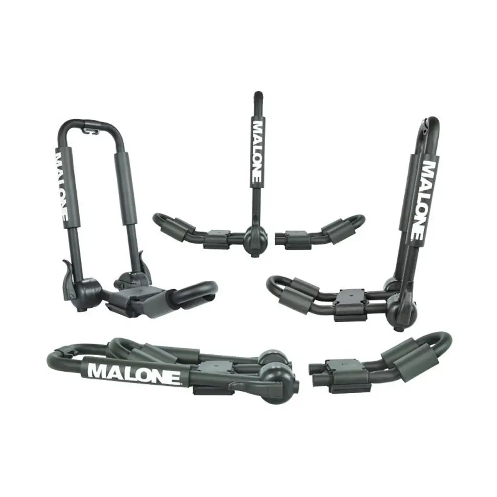 The MPG125 FoldAway-5 can carry a single recreational or touring kayak on it's side, vertically stack two kayaks, carry a canoe or large sit-on-top kayak, and transport any size SUP. Featuring a pair of quick-release fold-down frames with removable 2-boat modules for transporting wide loads. Each set of carriers are built with corrosion resistant coated steel, thick over-sized padding and heavy duty molded parts. The universal mounting system fits a large cross section of aftermarket load bars (round, square and oval) as well as most factory systems. Also includes two lengths of mounting bolts to achieve the best rack installation. Comes with cam style load straps, bow & stern safety tie-downs and SUP foam pads. Product workmanship and material performance is guaranteed with our Lifetime Limited Warranty. Features: ·Includes 11' load straps and tie-downs for two boats ·Lifetime Limited Warranty Specifications: ·Weight: 14.5 lb ·Dimensions (folded): 19.5" x 8.5" x 3.5" ·Dimensions (deployed): 19.5" x 8.5" x 14" ·Load Capacity: 2 Boats - Maximum Weight Limit Per Boat: 75 lbs Installation: ·All Malone carriers come with two lengths of mounting bolts. Cross bars can vary in thickness and having multiple lengths to choose from allows for the best fit. ·We recommend that the unused set of bolts be retained for future use with a different vehicle or cross bars. ·Longer length bolts are sold separately. ·The carrier base has a rectangular "cutout" for square cross bar fit. The "cutout" will not effect the fit or function when installed to round or oval shaped cross bars. What's in the box: ·(2) Fold-Down Carriers ·(2) MultiRack Extension Modules ·(16) M6 x 1mm zinc coated 60mm Mounting Bolts ·(16) M6 x 1mm zinc coated 75mm Mounting Bolts ·(16) M6 T-Knobs ·(8) Universal Mounting Brackets ·(2) SUP Foam Blocks ·(4) 11' Cam Buckle Load Straps ·(4) Bow and Stern Safety Lines w/ S-Hooks ·(1) Instruction Manual .