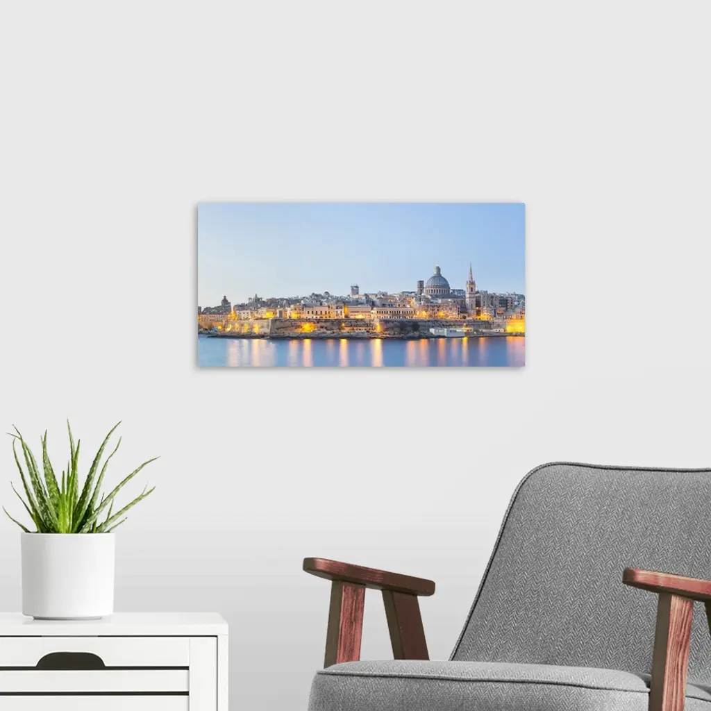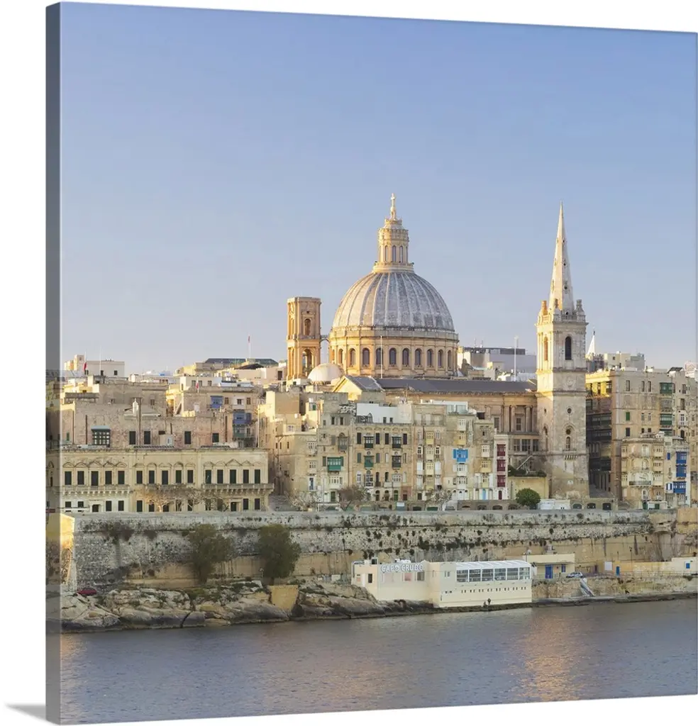 Malta, Valletta. The View From Sliema Across Marsamxett Harbour To Valletta