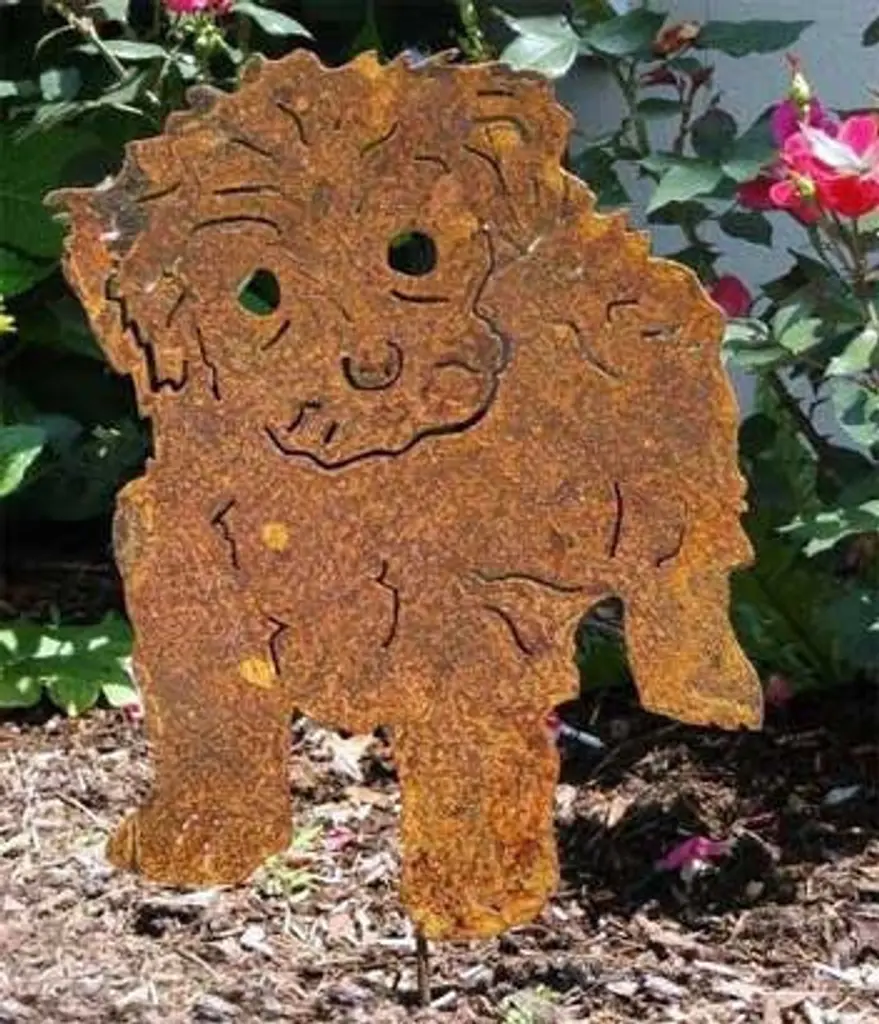 This handcrafted Maltese will be a charming and fun piece to add to any home or garden decor.Approx. 18 inch diameterStake or Hanger attached• Please Note: The rust patina varies on each piece (We rust each piece individually).ï¿1⁄2ï¿1⁄2_ï¿1⁄2 The rust powder coat option is a great option for those who like the look of rust but without possible staining or the affects of real rust. The rust powder coat option (eliminates potential rust staining) is a great choice for the interior of any home.Hand Made in the USA, NOT mass produced.