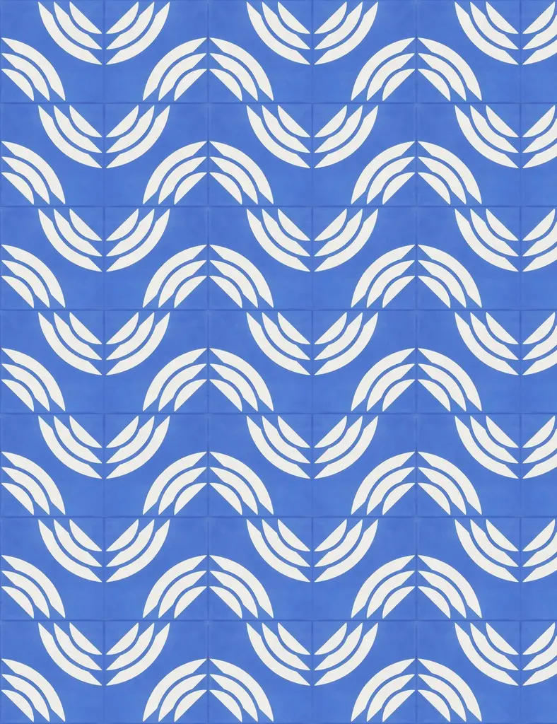 A snakelike shape that twists and turns to form an infinite range of winding patterns for your surface.Cement TilesType: Encaustic cement tileProduction process: Hydraulic pressing processMaterials: White cement, stone powder, additives, grey cement, sand/clay, and glazeQualities and maintenance: Porous — apply sealer as recommended by manufacturer on productTiles per box: 12Note: Please expect subtle variations in the color and thickness of our handmade tiles.Lead times may vary and delays are possible due to circumstances beyond our control. We are not responsible for delayed installation, lost work time, or altered construction timelines in the event of a delay. All tile orders are final — no returns or exchanges will be accepted. Shorter lead times depend on stock availability.Samples are only for reference to color and scale, and although they are carefully packed, samples may be inadvertently damaged during shipment or may contain fragments of chipped tile or clear breaks in the sample. We add 20% overage to all tile orders to account for this.
