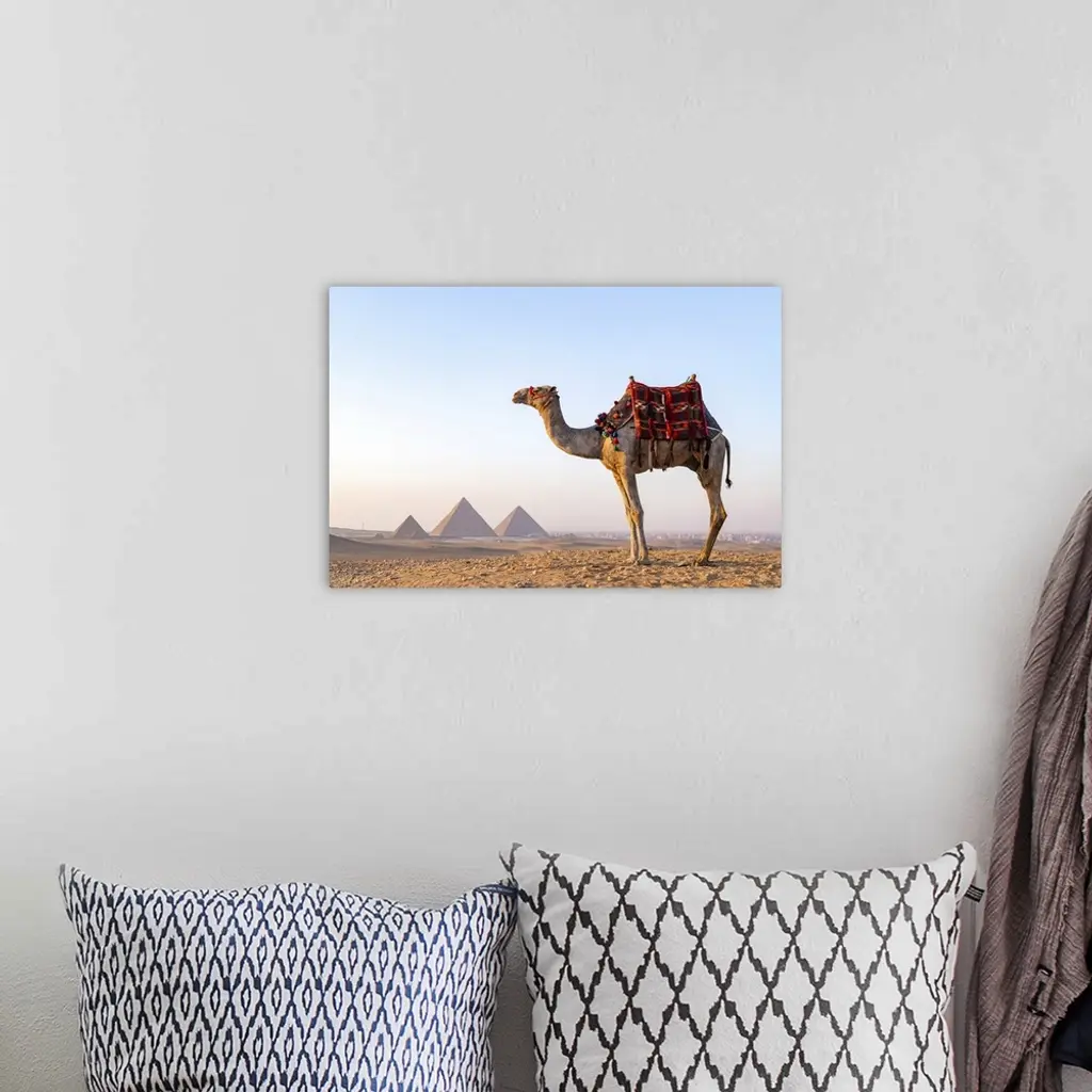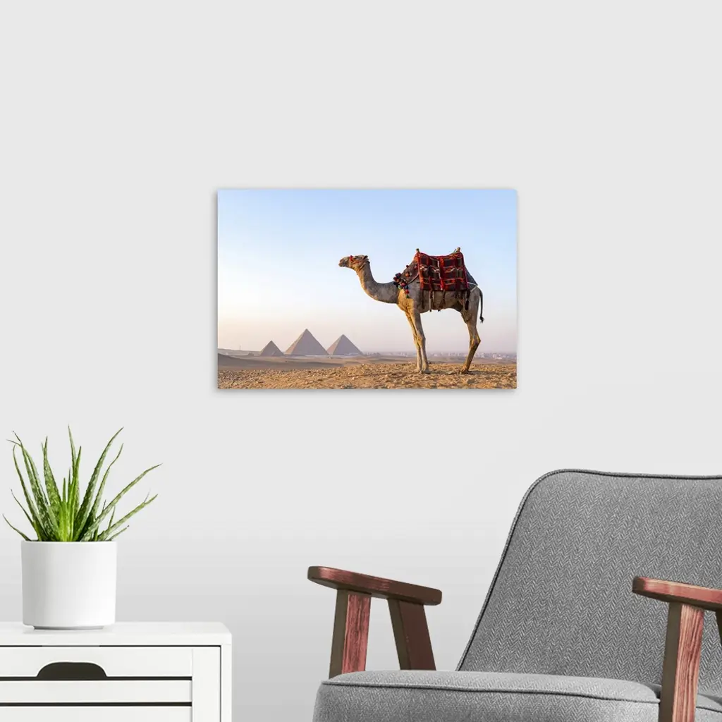 Man and his camel at the Pyramids of Giza, Giza, Cairo, Egypt