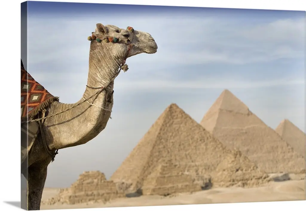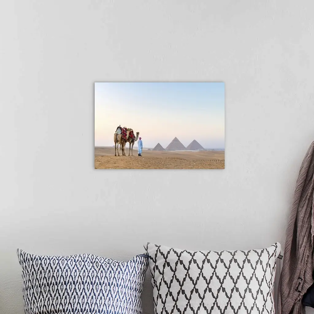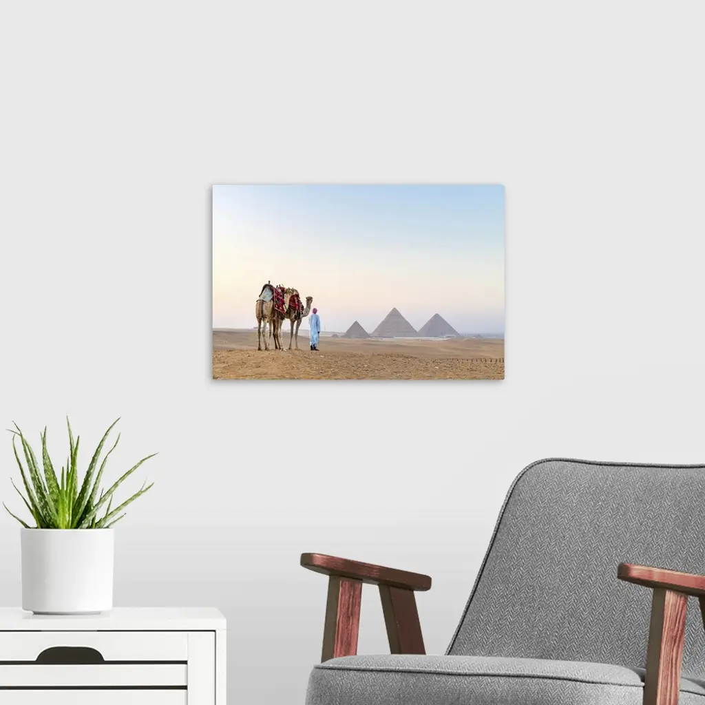 Man and his camels at the Pyramids of Giza, Giza, Cairo, Egypt