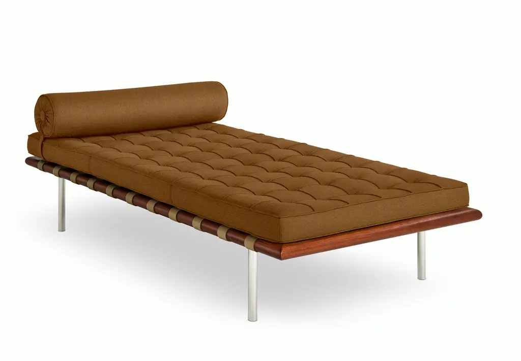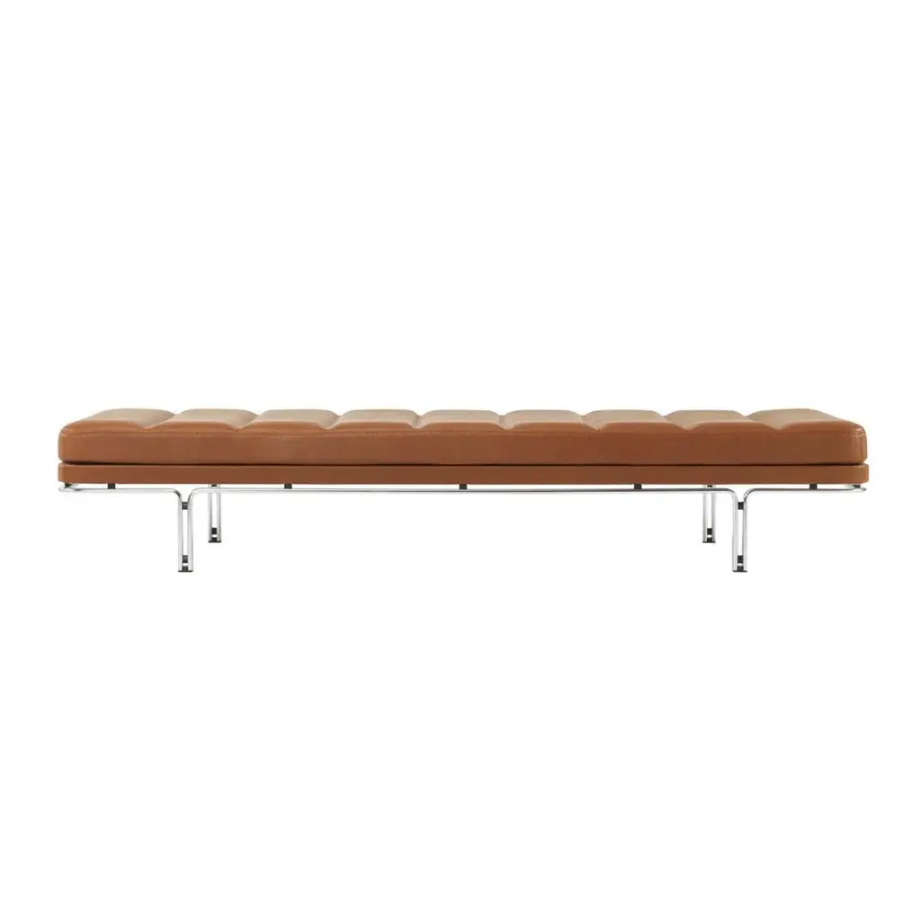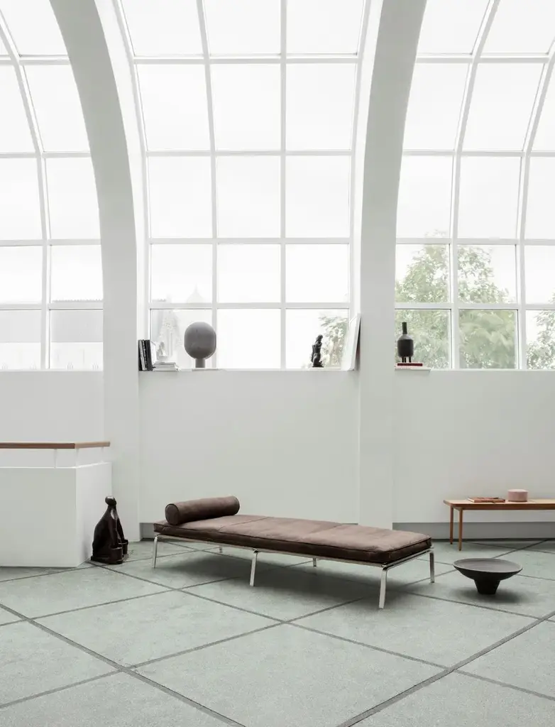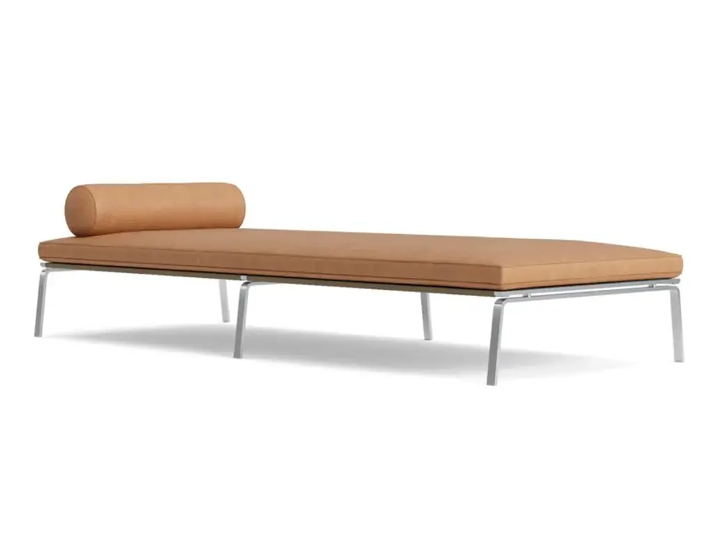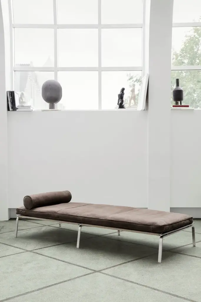 The Man Daybed features a stainless steel frame with a seat and back made of stretched canvas. The cushions are upholstered with high quality leather and have fine down filling.The Man furniture series references the 1950’s - 1960’s Danish furniture design, a period that was inspired by Bauhaus where simple and clean shapes were in focus. Minimal detailing and stylish clean expression portray this style of design in the Man Series. The charismatic parallel frame and the visible joining of the materials clearly define the construction found in this series. The furniture of the Man series is suitable for open spaces as well as homely surroundings, where the furniture appears both decorative and functional.