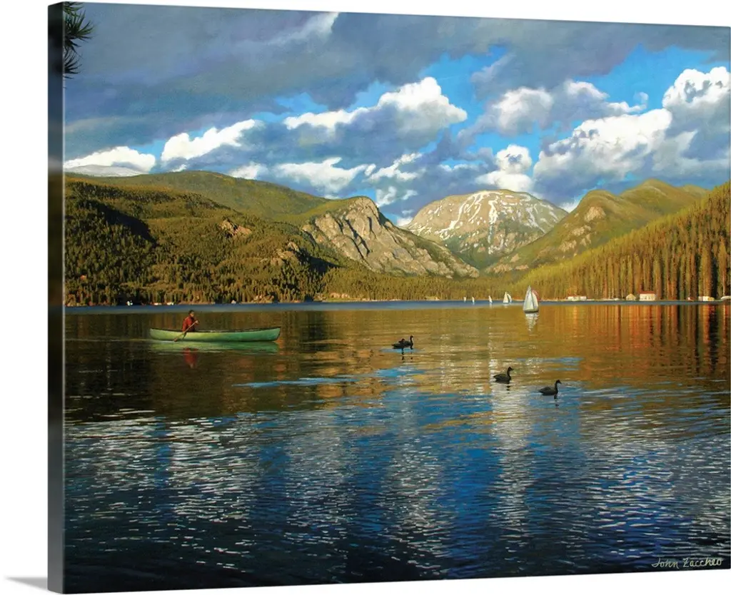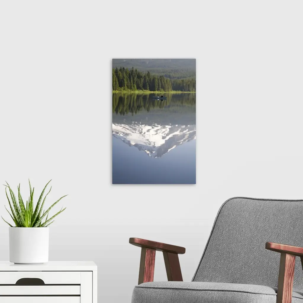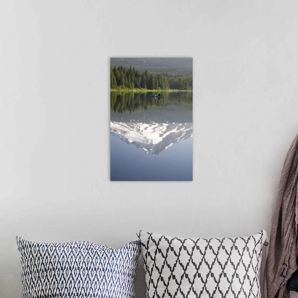 Man On Boat, Mt. Hood Reflects In Trillium Lake, Mt Hood National Forest, Oregon wall art for home and office decor. Discover canvas art prints, photos, mural, big canvas art and framed wall art in GreatBigCanvas.com's varied collections.