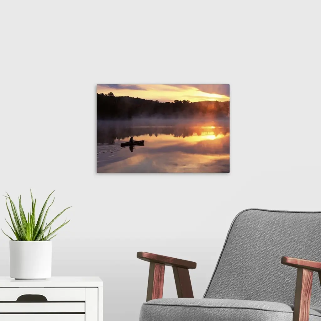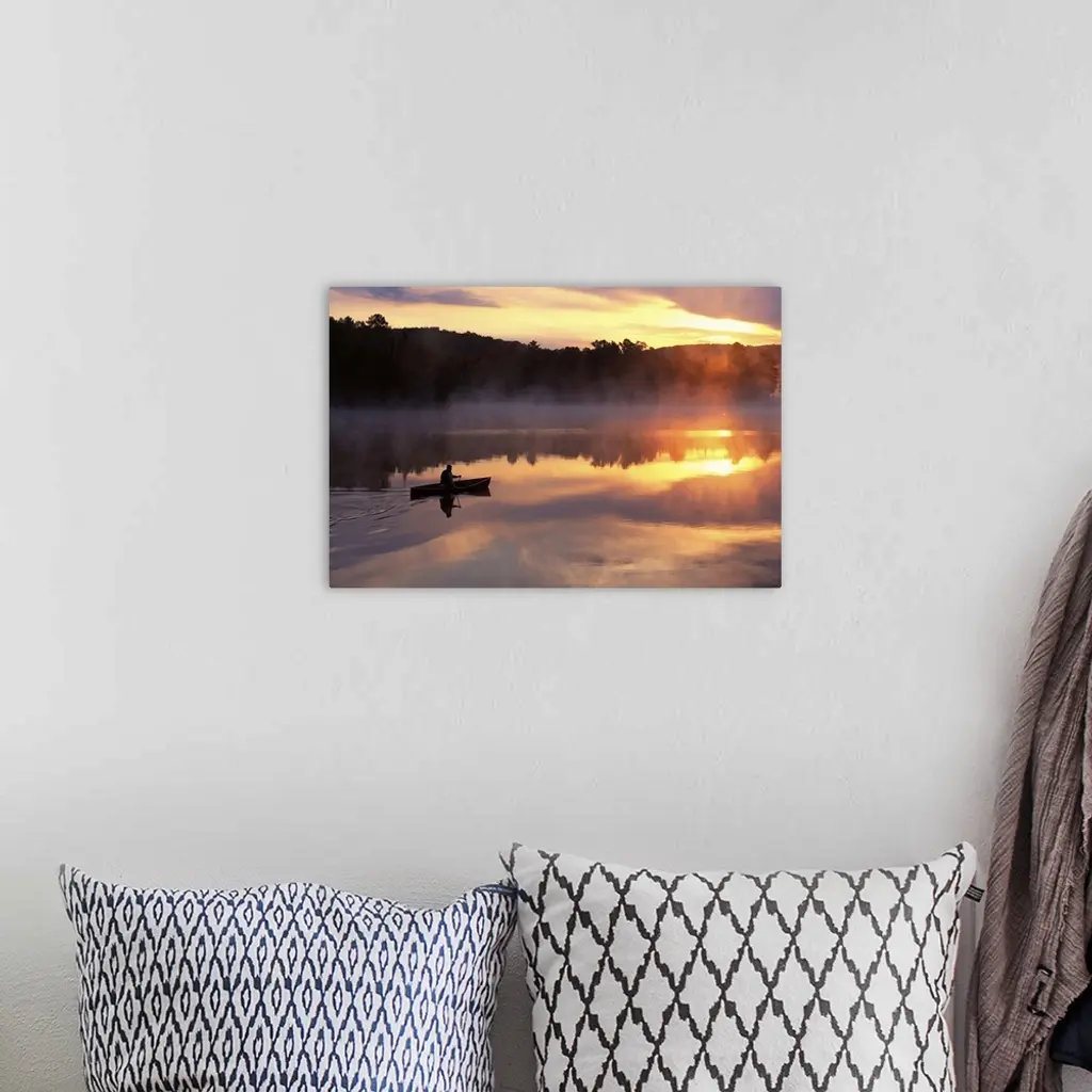 Man Paddling Solo Canoe On Oxtongue Lake